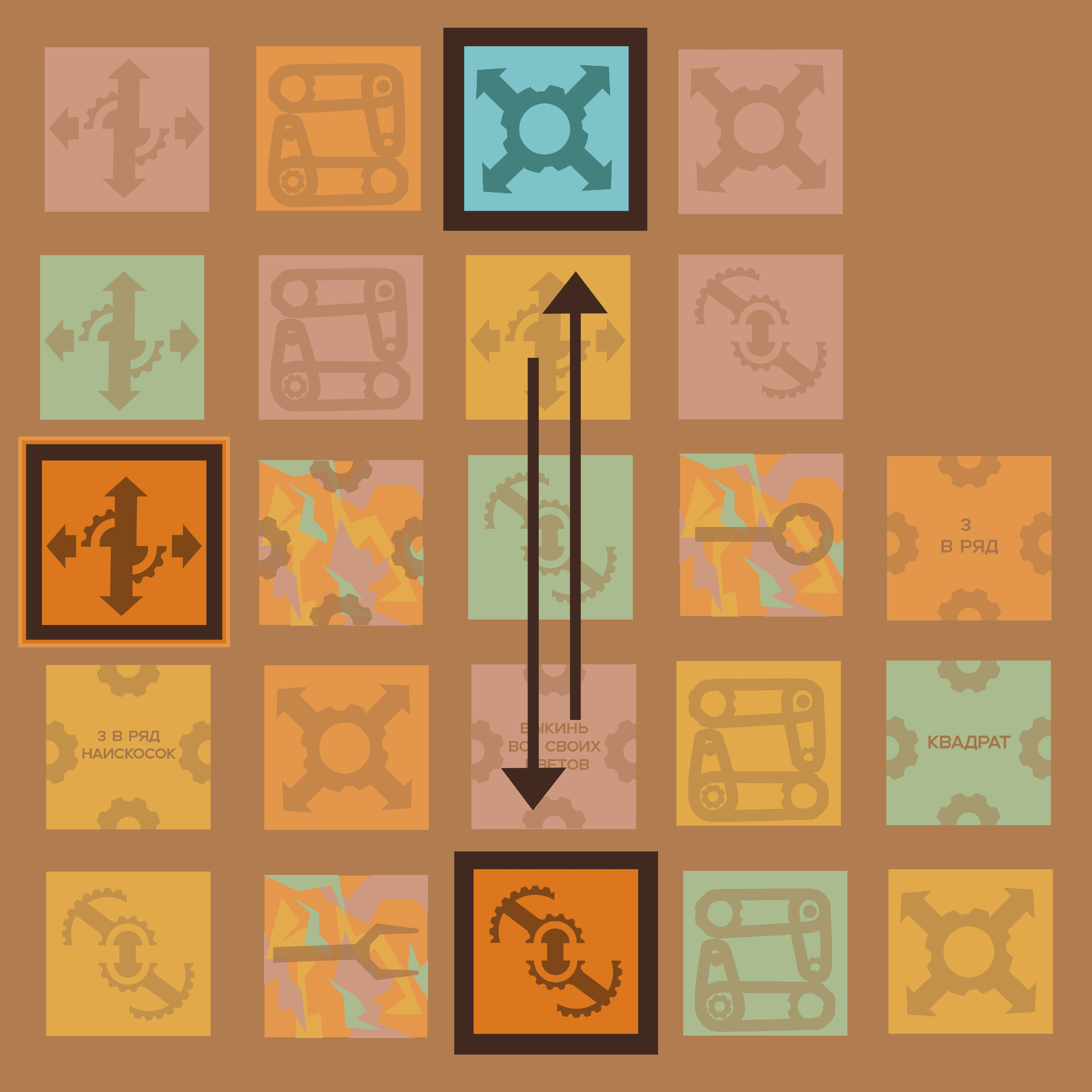 Перемешайте карты, разложите поле 5×5.