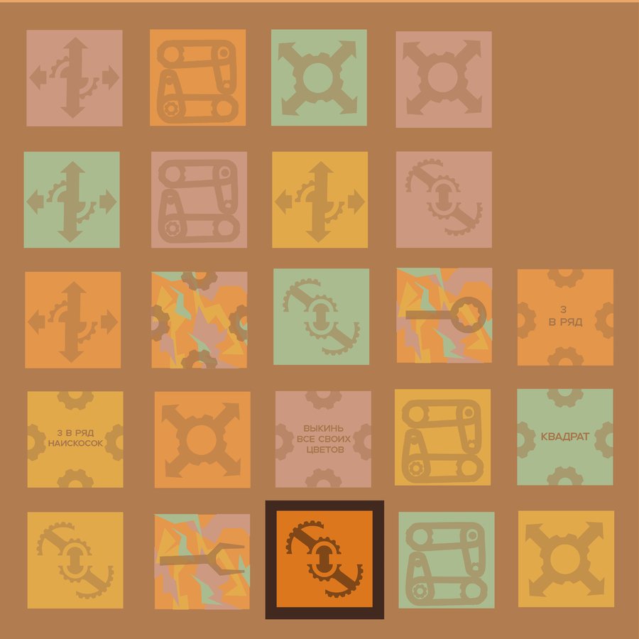 В правом нижнем углу карты шестерёнка с числом — сколько твоих цветов должно быть в комбинации.