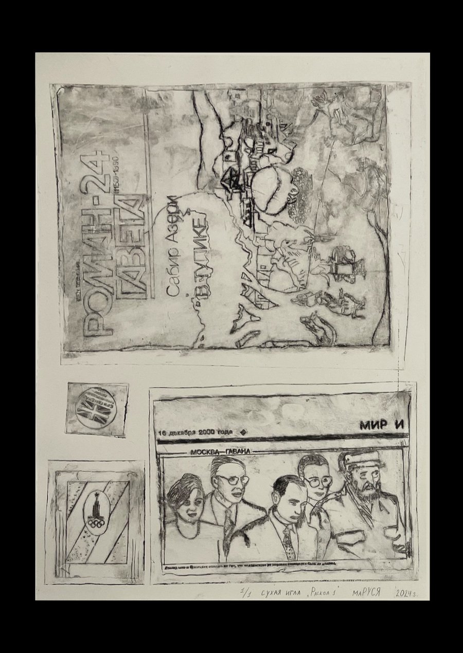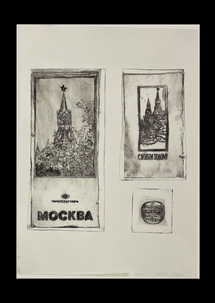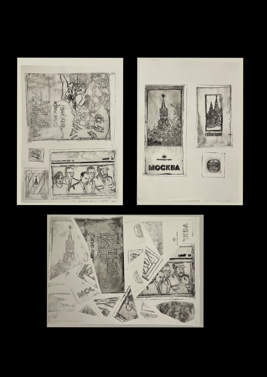 Триптих «Раскол» в технике глубокой печати — это напоминание об истории нашей страны через призму коллективной памяти. Мне, как ребенку нулевых, довольно сложно представить как все было в действительности. Благодаря рассказам людей, истории и таким артефактам, у меня складывается свое собственное ощущения того периода и его влияния на настоящее.
