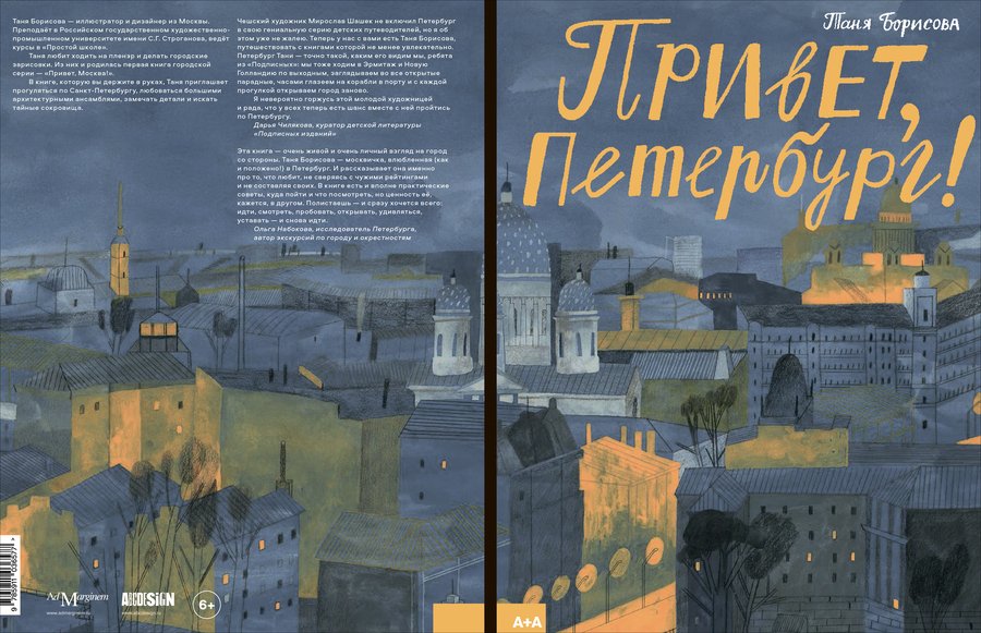 Борисова Т. Привет, Петербург! / Т. Борисова. М: Ад Маргинем Пресс: ABCdesign, 2023 (А+А). — 40 с.: цв. ил. — ISBN 978-5-91103-657-7; ISBN 978-5-4330-0201-2.
