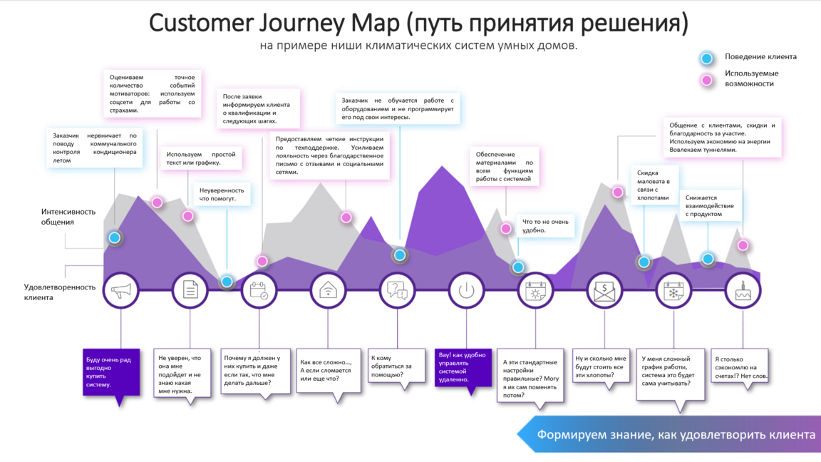 Чтобы сделать карту пути клиента, нужно разбить ЦА на сегменты, учесть их особенности поведения и рутины, времяпровождения и интересов, возраста и другого.