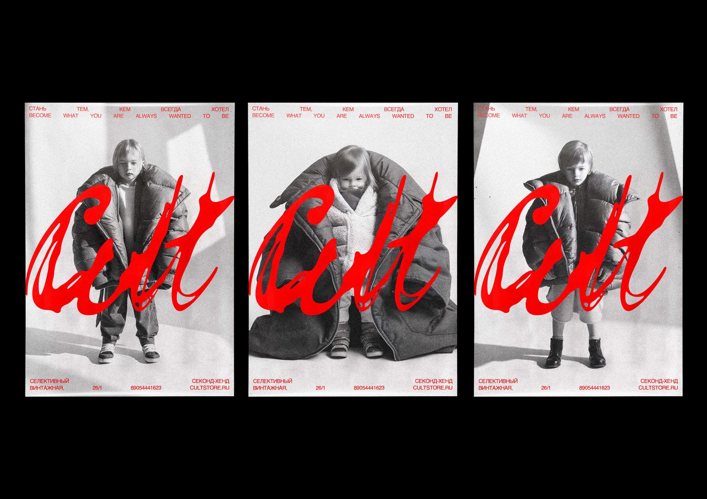 So, first I decided to change the previous project a little bit and expand the CULT to my own tailoring, now it’s both a selective second-hand and an independent unique brand. The basic concept is rebellion. A move against popular fashion. Some new story. Therefore, it was based on the use of handwritten elements (like a logo, for example). The palette is obvious: red and black, because these colors create a good contrast and convey the overall meaning of the project.