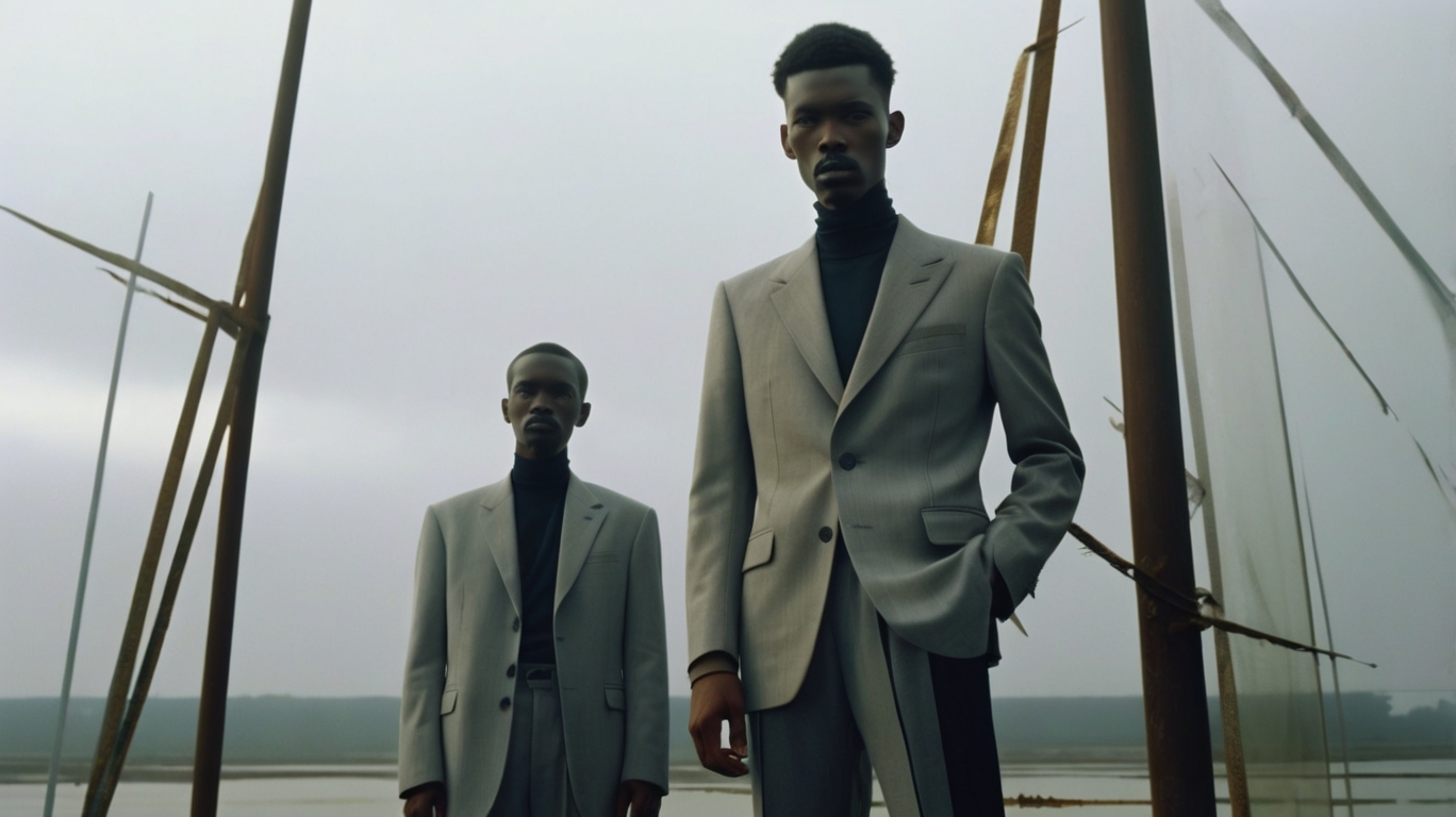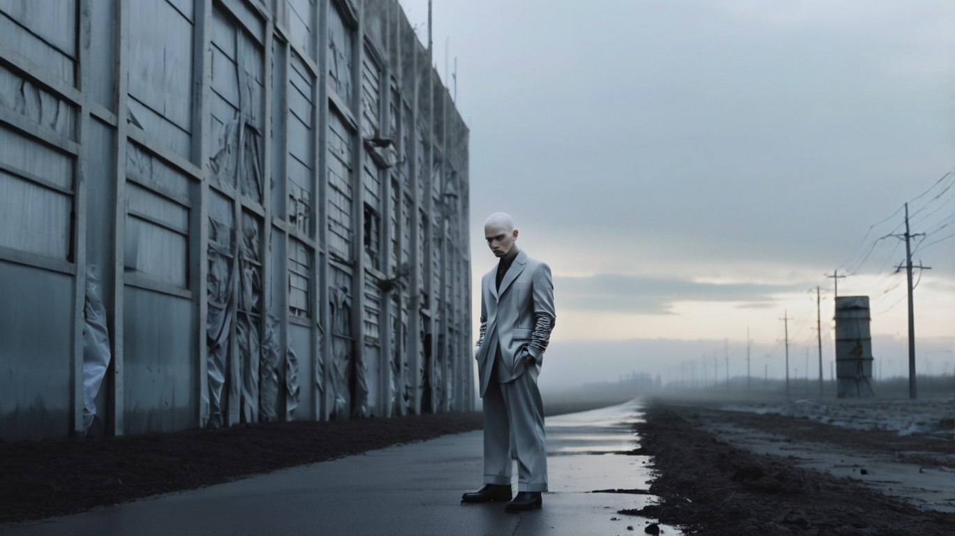 Promt woman: a model skinny and high girl wearing largest dress, portrait, with a sky background, in a 90s style with a grain film and a Y2K aesthetic, the settling is outdors at dusk, The background is fogy, those are no people, and she’s standing up to lugging, her views conference or nonchalt, intersting, surreal quality, in the style of Tim Walker, canon prima seper 105u, stile raw, stilize 1,000, personalize r74pnuts over men: the manis ow, stylize 1,000, perscientiste r74pnauts per se. «Clothering a style like maison margela. Asian man, thein and call, portrait, with a sky background, in a 90s style with a grain film and a Y2K aesthetic, the settling is outdoors at dusk, The background is foggy, there are no people, and shex standing text to large actory buildings, his perspective perspectives conference or nonchaling, interdicting angel, surreal quality, in the style of Tim Walker, canon prima super 105u, stile rau, stilize 1000, personalyze r74pnopopopoly