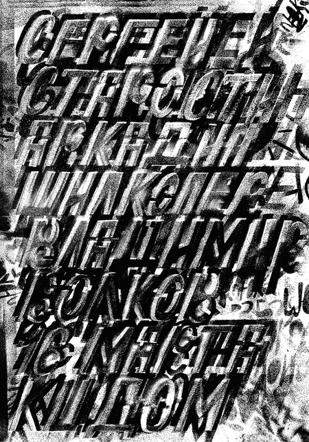 Работа выполнена без эскизов, сразу в формате с помощью трафарета и баллончика. За счет наслоений графики возникает эффект глубины в плоском формате плаката. Афиша участвовала в выставке Золотой пчелы в Центре культуры «ЦК19» в Новосибирске, а затем — в Новой Третьяковке.