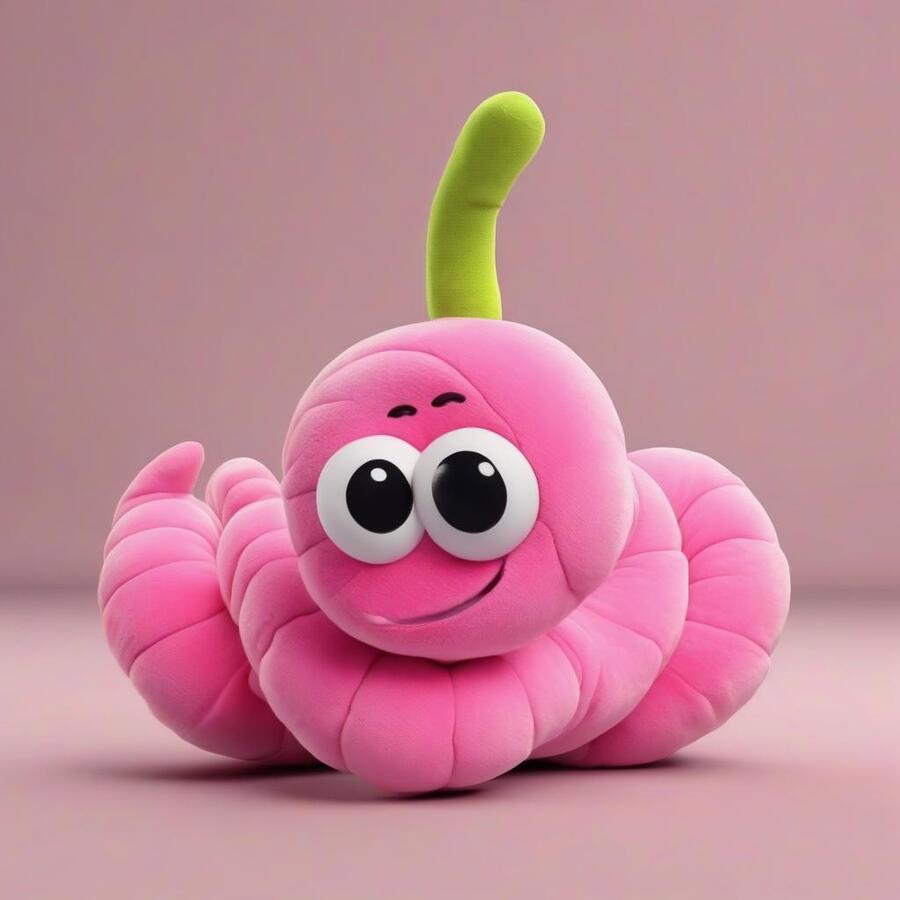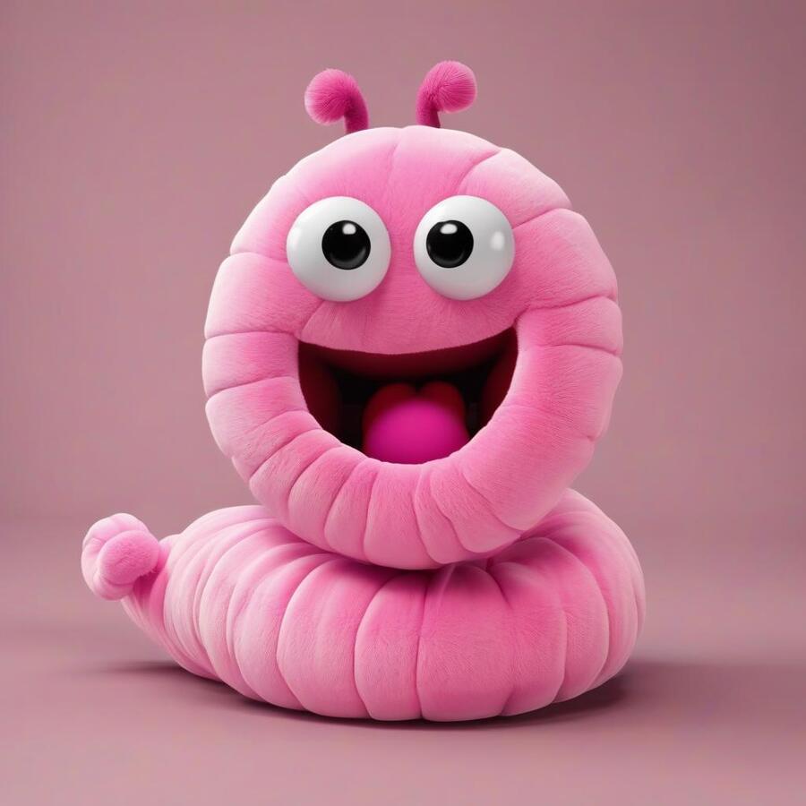 В качестве талисмана-маскота также был выбран червячок. Для генерации использовался следующий промт: plush toy pink cartoonish worm with tiny eyes and big smile 3d, выполнен нейросетью Stable Diffusion XL.