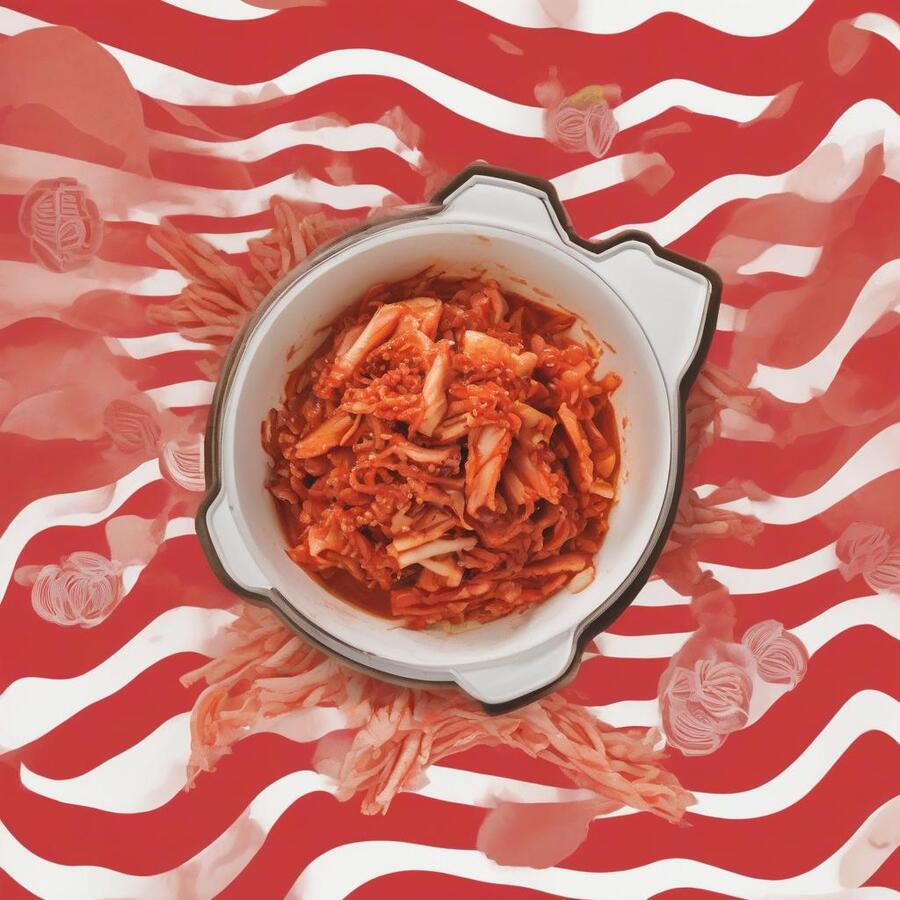 Для генерации блюд использовалась та же самая сеть. Промт содержал общую характеристику для всех изображений: white background with red stripes on it; и различную вариацию для блюд: korean kimchi \ fried rice \ asian style dumplings \ noodles
