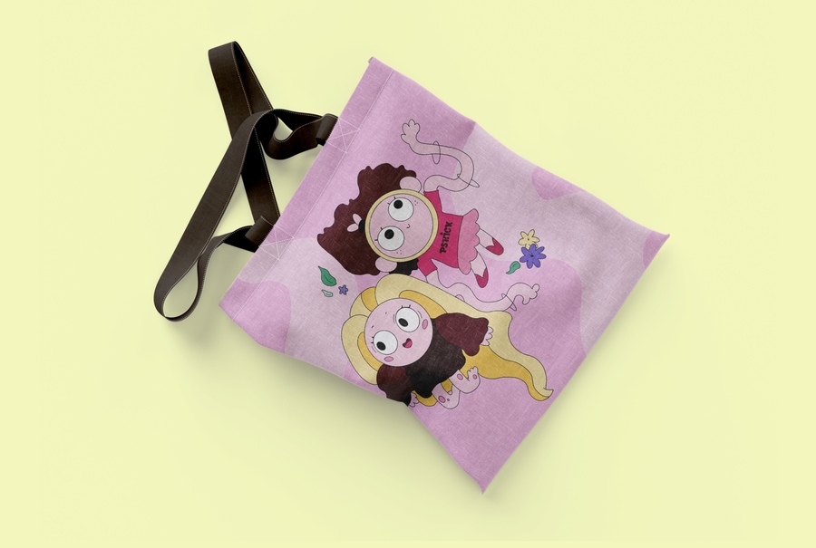 В оригинальном проекте я сделала базовый мерч для бренда, сделав наклейки, шоппер, расчески и упаковочную коробку. Представленные товары либо дополняли, либо так или иначе соответствовали категории самого продукта — сухой шампунь.