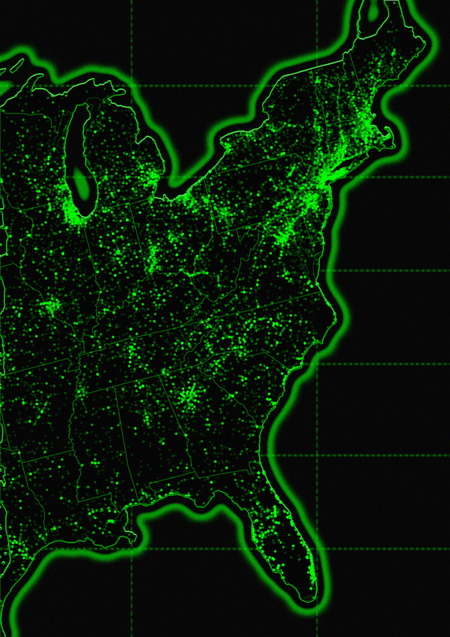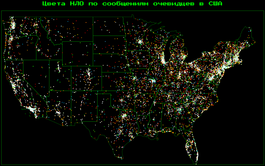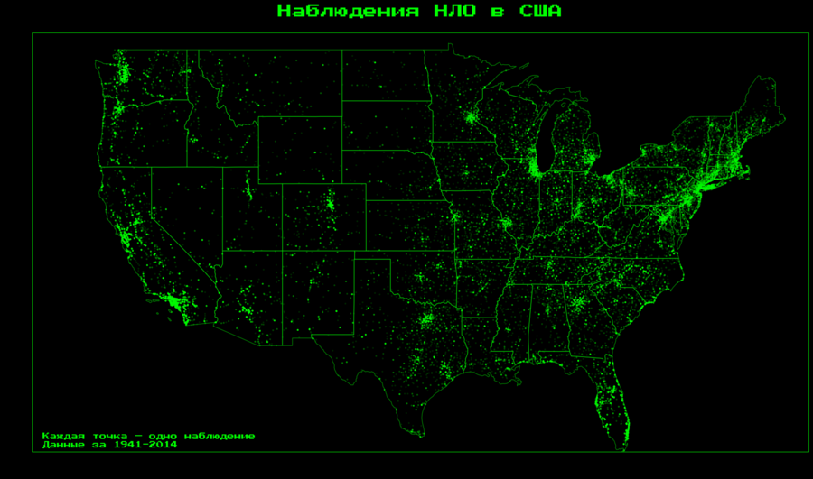 Точечная карта (Dot Density Map) — дает детализированное представление о том, какие регионы были особенно «уфологически активны».