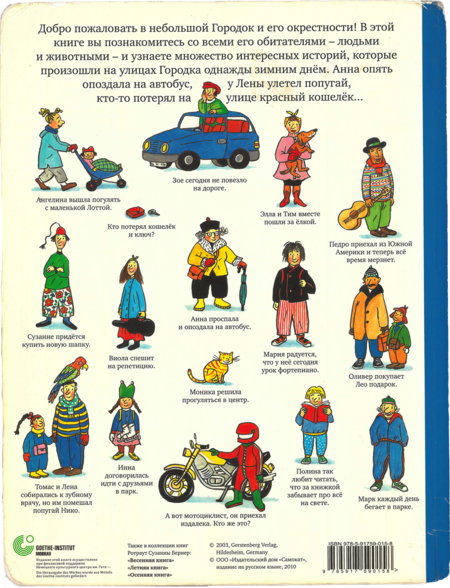 В то время как обратная сторона обложки знакомит читателя с жителями городка. С каждой прочитанной книгой мы узнаем все больше об именах персонажей и их жизни из обратной стороны.