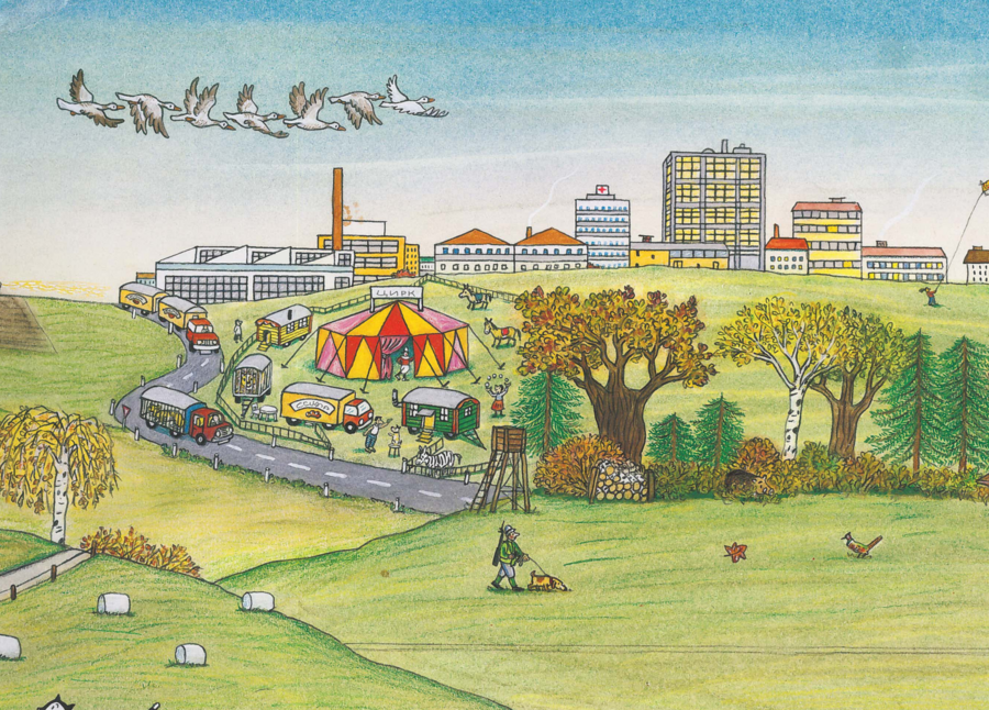 Ротраут Сузанна Бернер, иллюстрации из серии «Городок», 2010 и 2023 года.