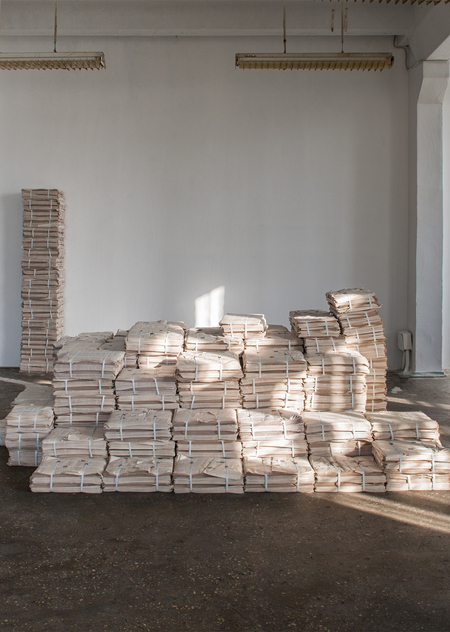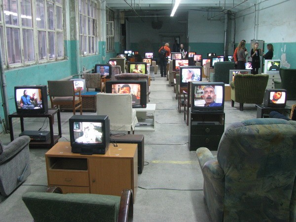 Важно отметить и то, с чего и начинается основная экспозиция. Первое, что видит человек, заходя в здание бывшей типографии, — это стихийно образовавшиеся коллажи, анонимные произведения искусства. Кураторы и организаторы биеннале не считали необходимым зачищать пространства специально для выставки. В идеальном порядке, в чистых, белых, стерильных пространствах можно утратить эту нить индустриальности, которая считается основным мотивом всей биеннале. Помимо прочего эти коллажи сами по себе и воплощают эту идею репродукции, реконструкции и ретрансляции.