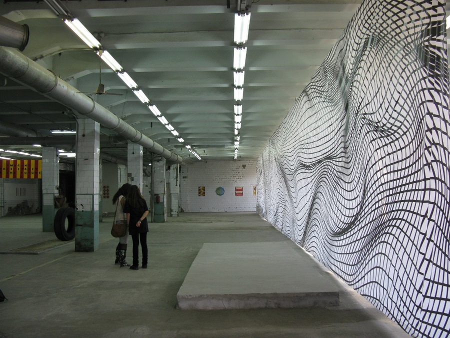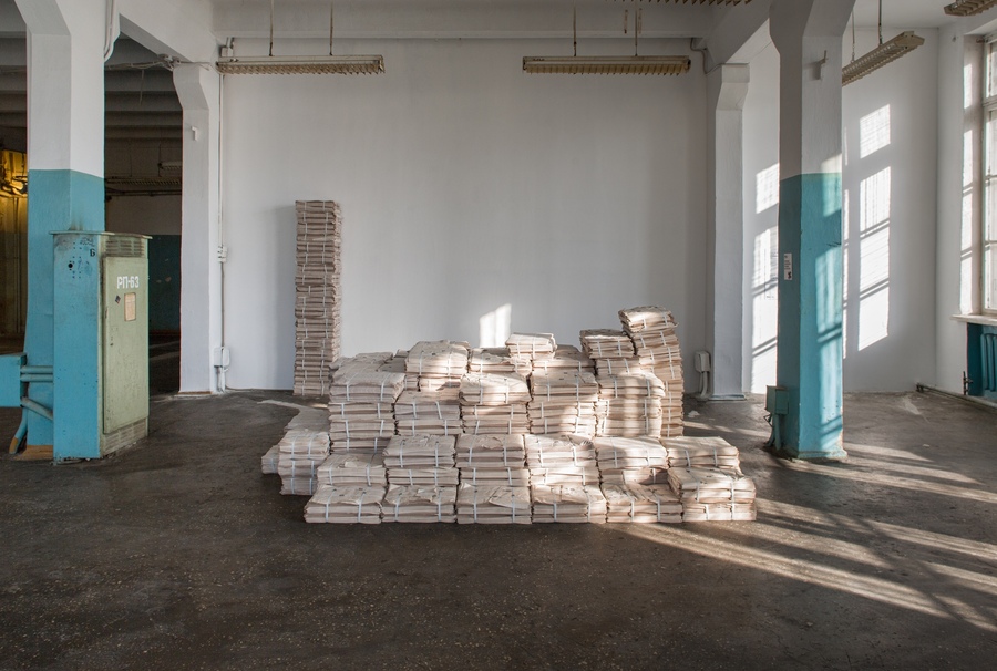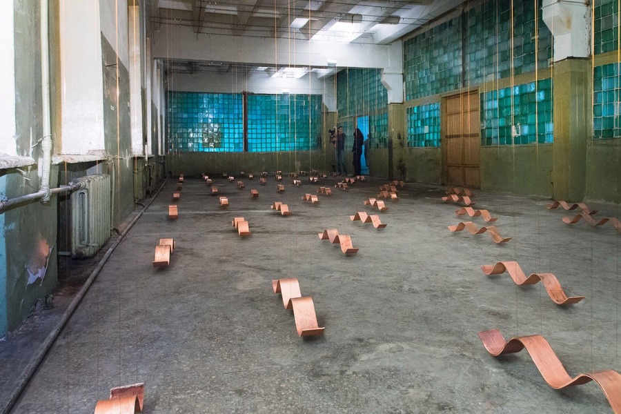 (1-2) — Основная экспозиция в бывшей типографии газеты «Уральский рабочий» (3) — Инсталляция «Клото», Татьяна Ахметгалимова, 2010, Свердловский Камвольный завод, фото: Владимир Пономарёв