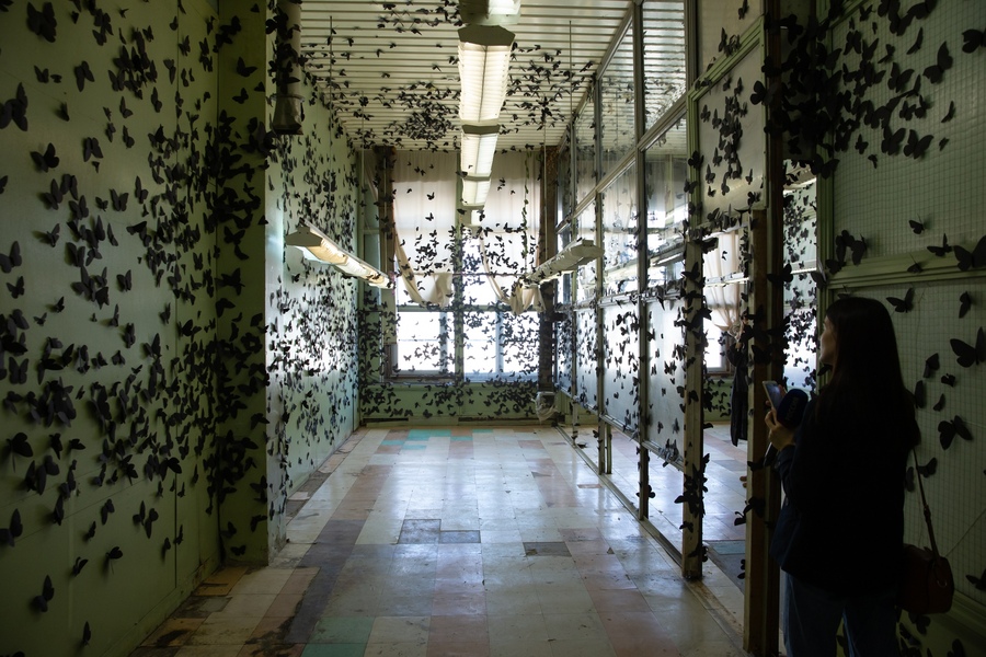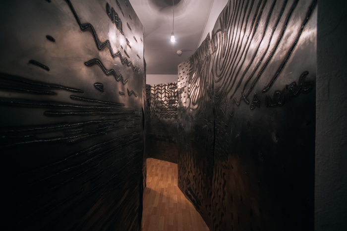 Здесь на руку куратору сыграло пространство гостиницы «Исеть», бывшего общежития чекистов. Вместо привычных больших, просторных, промышленных пространств, работы экспонировались в номерах, небольших по площади обособленных комнатах.
