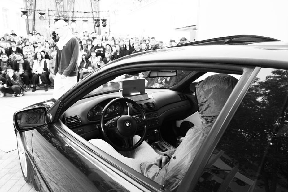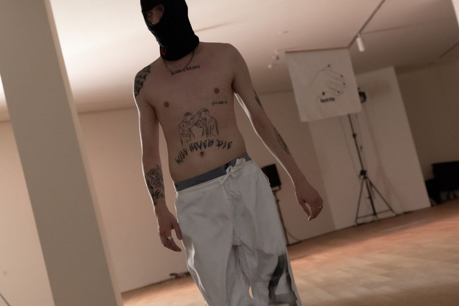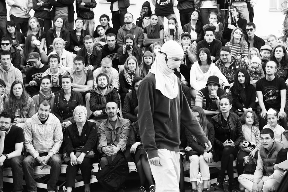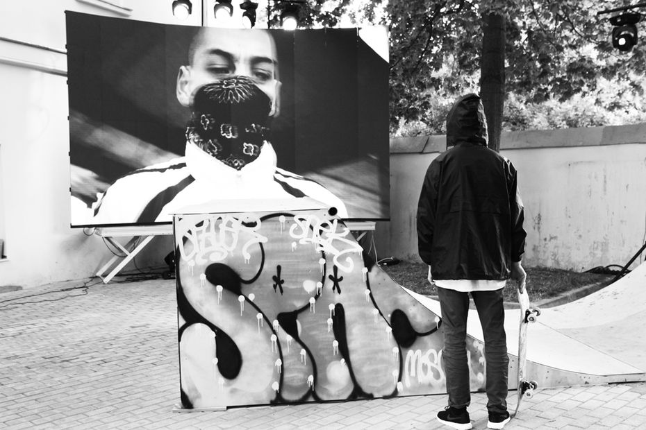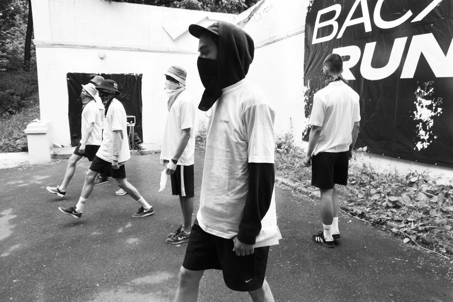 Я уже более 10 лет занимаюсь перформативным, community-based искусством и тем, что находится на пересечении разных медиумов — междисциплинарными практиками. Изначально это было связано с подростками, уличной субкультурой, околорадикальными и андеграундными сообществами: граффити, рэп, скейтбординг и так далее. Я всегда говорила из этого коммьюнити, как его часть. Так, в 2014 году был создан ВАСЯБЕГИ / VASYARUN — анонимный проект, который был полностью сосредоточен на перформансе. Мы их даже назвали спектаклями, то есть это всегда было действие на грани между театром, искусством и музыкой. Смысл проекта заключался в том, что любой даже непрофессиональный, но заинтересованный в участии перформер мог подать заявку или прийти на кастинг. Участниками всегда были парни от 17 до 30 лет — такой архетипичный молодой человек из России с субкультурным бэкграундом. До февраля 2022-го раз в год мы обязательно делали перформанс. Сейчас формат изменился, время другое. Я немного переориентировалась и делаю скорее ивенты.