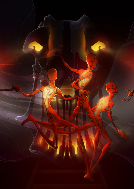 Иллюстрации к концепции видеоигры-роуглайка, в которой мигранты мчат на поезде смерти навстречу мечте и пытаются не спалиться — дотла.