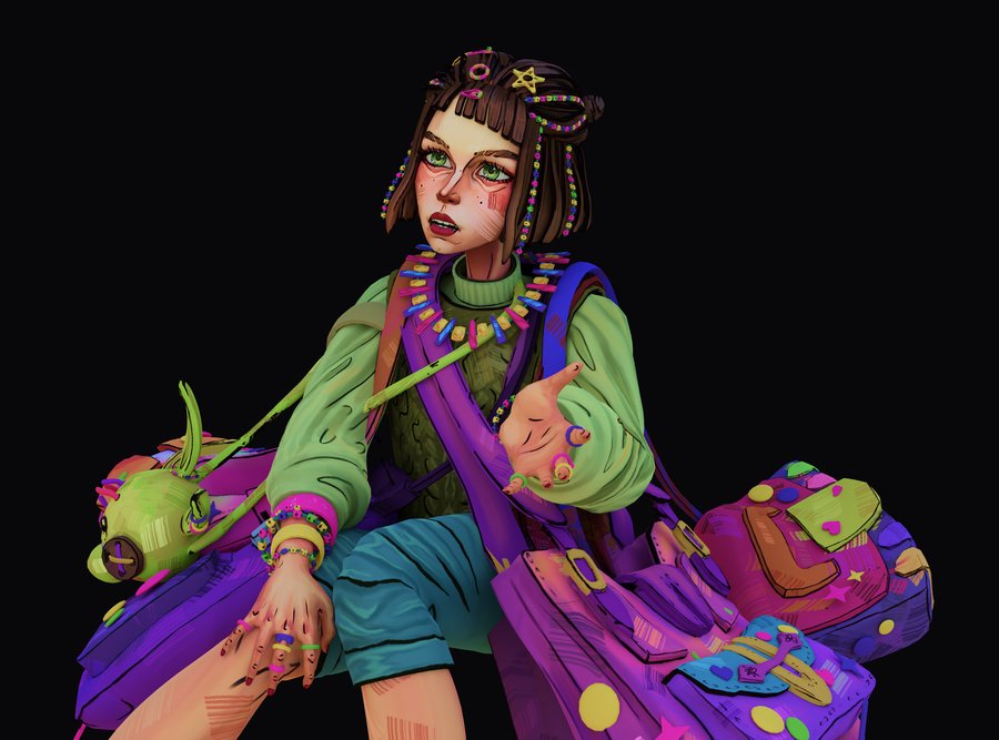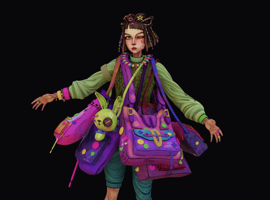 For the animation video, a character was created from the original concept, and a sculpture, retopology, textures, and rigging were made.