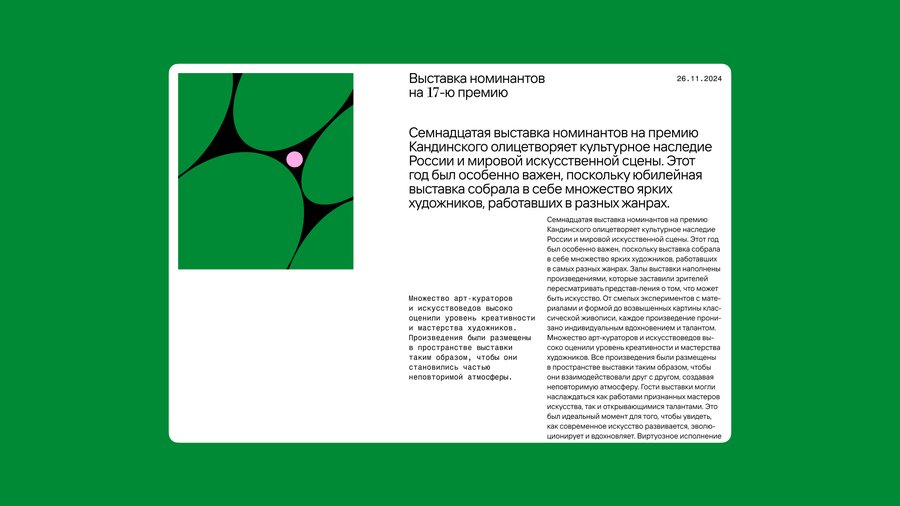 Мультимедийный проект посвящен глобальному явлению в культуре начала 20 века — русскому авангарду. Каждый студент переосмыслил творчество одного из художников и сделал анимационный ролик. Всего получилось 12 историй.