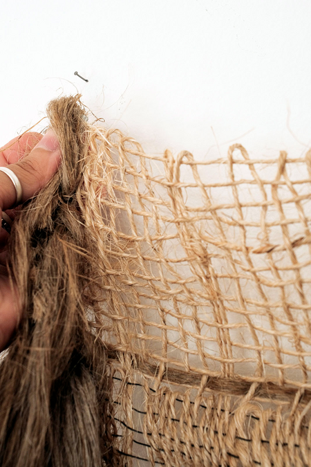 Sisal, flax, metal wire. Hand weaving. 65×72 cm
