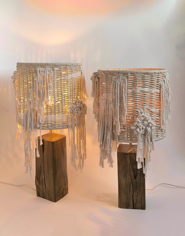 Идея светильников родилась из желания объединить два противоположных начала: грубое, брутальное основание, выброшенное волнами на берег Белого моря и нежные, изящные плетёные абажуры с элементами ткачества. Автор вдохновлялся контрастами природы и её удивительной способностью сочетать несочетаемое. Светильники «Ундина» воплощают в себе загадочность моря, его способность быть одновременно мощным и нежным.
