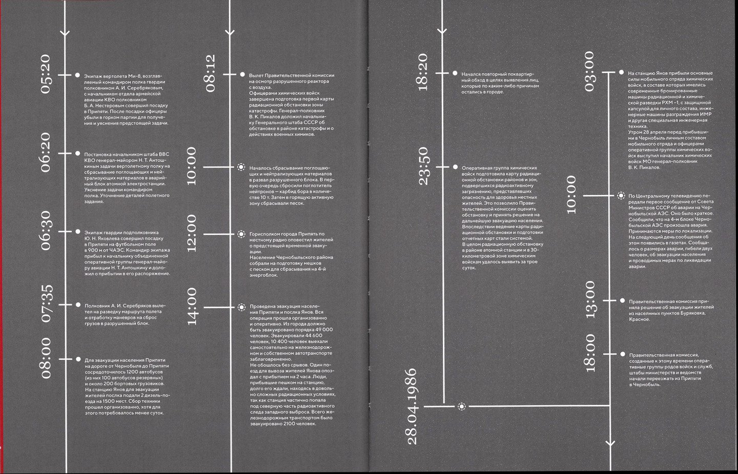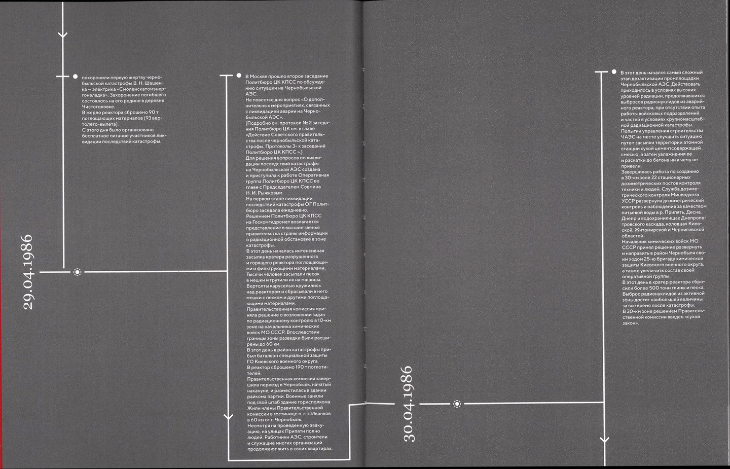 Издание содержит детальную хронологию событий, рассекреченные советские документы и откровенные интервью с ликвидаторами и свидетелями катастрофы.