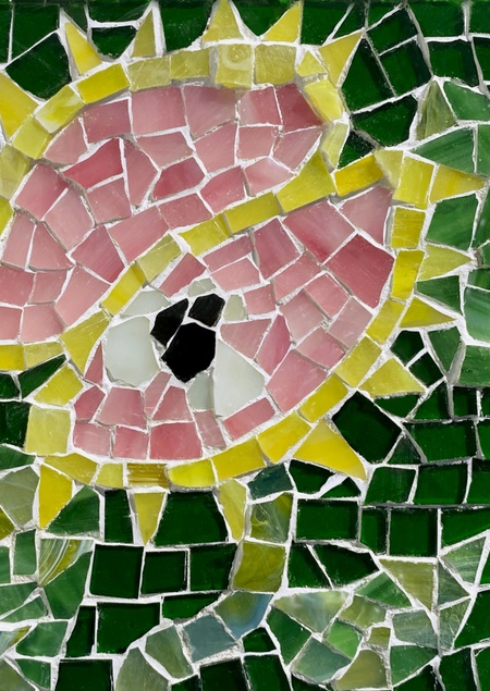 Вторая, «Розовая пантера», выполнена смальтой. Формат 20×20см.