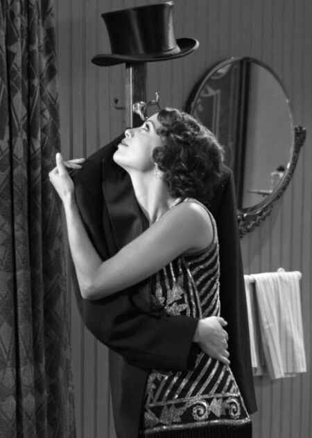 Films with storylines that directly or indirectly address the Golden Age of Hollywood are usually filled with glamorous images of classic stars, imitations of key elements of films that were made during that era and some visual markers of the time that provoke the impression of being historically accurate. In The Artist the nostalgic effect is achieved by representing two obsolete modes of film production — silent films of the 1920s and musical films of the 1930s. The main female character of the film, Peppy Miller (Berenice Bejo), goes all the way from being a movie fan who accidentally got photographed with a Hollywood star, to an aspiring supporting actress and, finally — to becoming a movie icon herself in the early days of sound film.