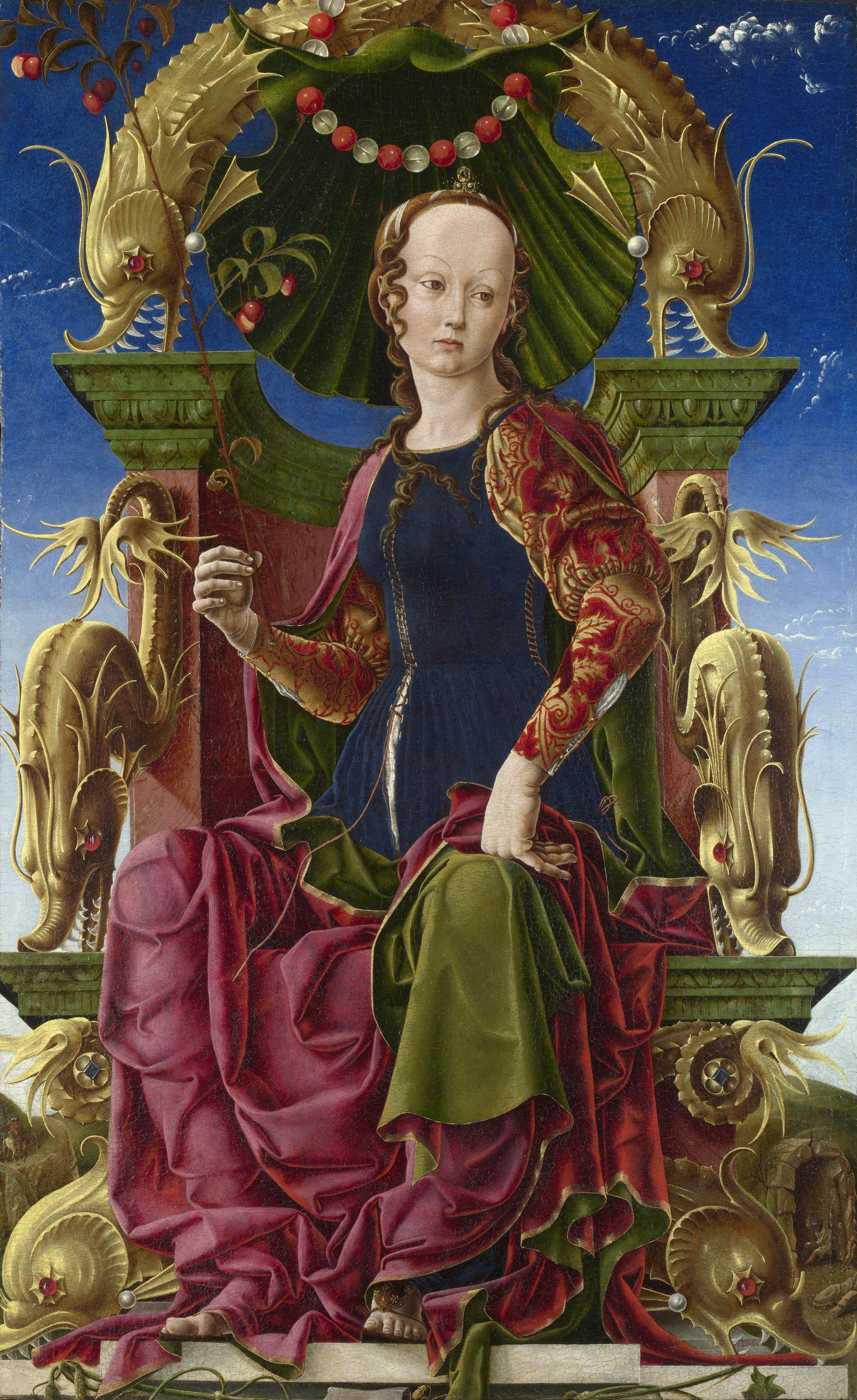 Козимо Тура — выдающийся мастер итальянского Раннего Возрождения и сооснователь феррарской школы живописи. Он трудился в Ферраре при дворе герцогов д’Эсте, которые были влиятельными покровителями искусства. На картине «Муза», созданной около 1455–1460 годов, изображена Каллиопа — муза эпической поэзии. В греческой мифологии она была дочерью Зевса и Мнемосины, а также одной из возлюбленных Аполлона. Это произведение было написано для дворца герцогов в Бельфоре. Считается, что в коллекции дома д’Эсте находилось девять картин, изображающих муз, и Каллиопа является одной из них.