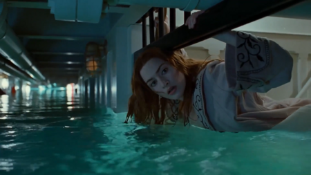 Если немного отойти от пятен крови и разрывов, дизайнеры могут создавать драматизм и просто с помощью мокрой одежды, как в «Титанике». Джек и Роза проходят через воду, отчего далее в кадре зритель видит героев во влажной одежде. За счет легкой ткани, которая прилипает к коже, усиливается эффект «мокрости», кроме того, теперь костюмы все время напоминают: герои на корабле, который уже тонет. Скоро произойдет трагедия.