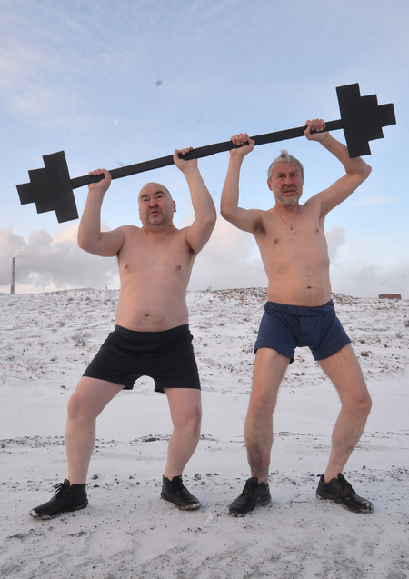 Оказавшись зимой в арт-резиденции в Норильске, художник Шабуров и его напарник по группе «Синие носы» Михин решили запечатлеть то, что их больше всего здесь волновало. Холод и борьбу с ним.