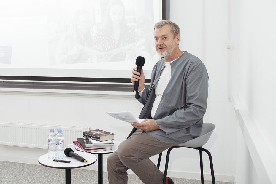 Я не принадлежу к числу отцов-основателей Школы дизайна (как Игорь Гурович, Эрик Белоусов и др.) — скорее, ко второй волне преподавателей. Получив предложение от Арсения Мещерякова, призадумался — интересно ли это мне, нужно ли — но думал недолго и согласился. Надо было создать двухгодичную программу курса, и вот это мне стало очень интересно. Создавая её, я и собственную, личную программу прописал, формализовал; понял, какие вещи меня особенно волнуют и сделал их основами своего преподавания. Достаточно большой собственный опыт, накопившийся к тому моменту, позволил мне выработать такую систему ценностей, которую я смог изложить в программе, отвечающей современному положению вещей в книжном дизайне, в книжном деле вообще.