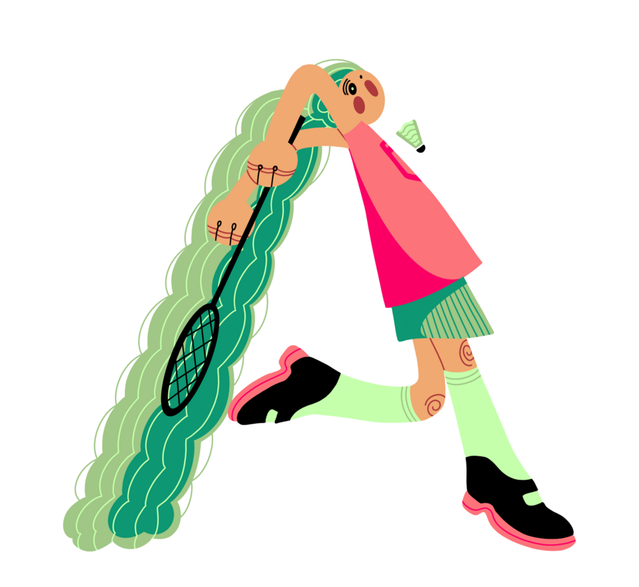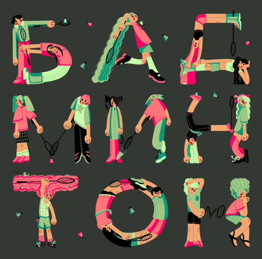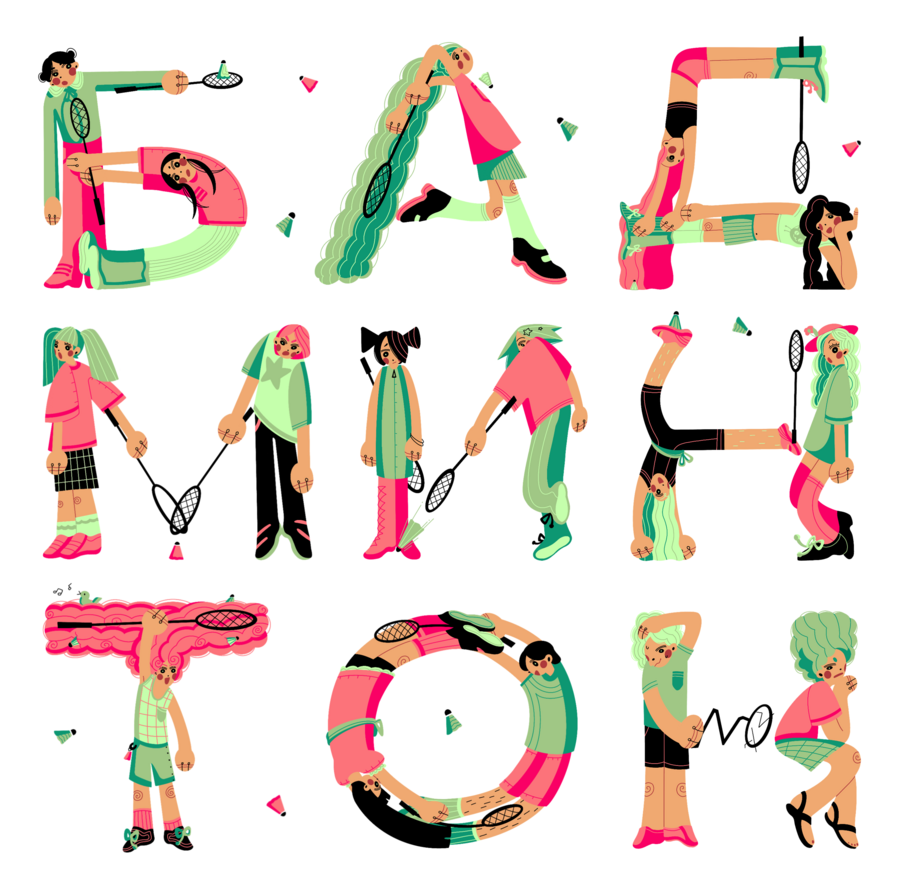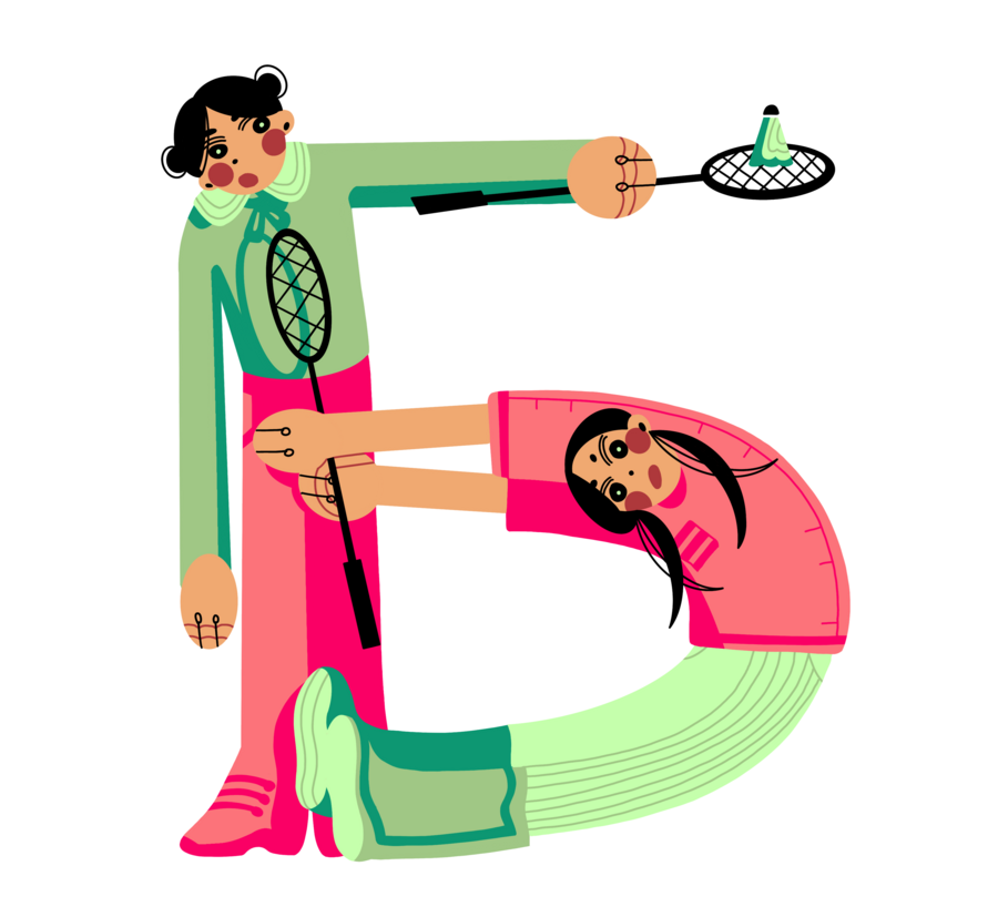 Бадминтон — очень веселый вид спорта, доступный каждому, будь то взрослый или ребенок. Иллюстративные буквицы изображают забавные сценки, многие из которых могли происходить с каждым игроком.