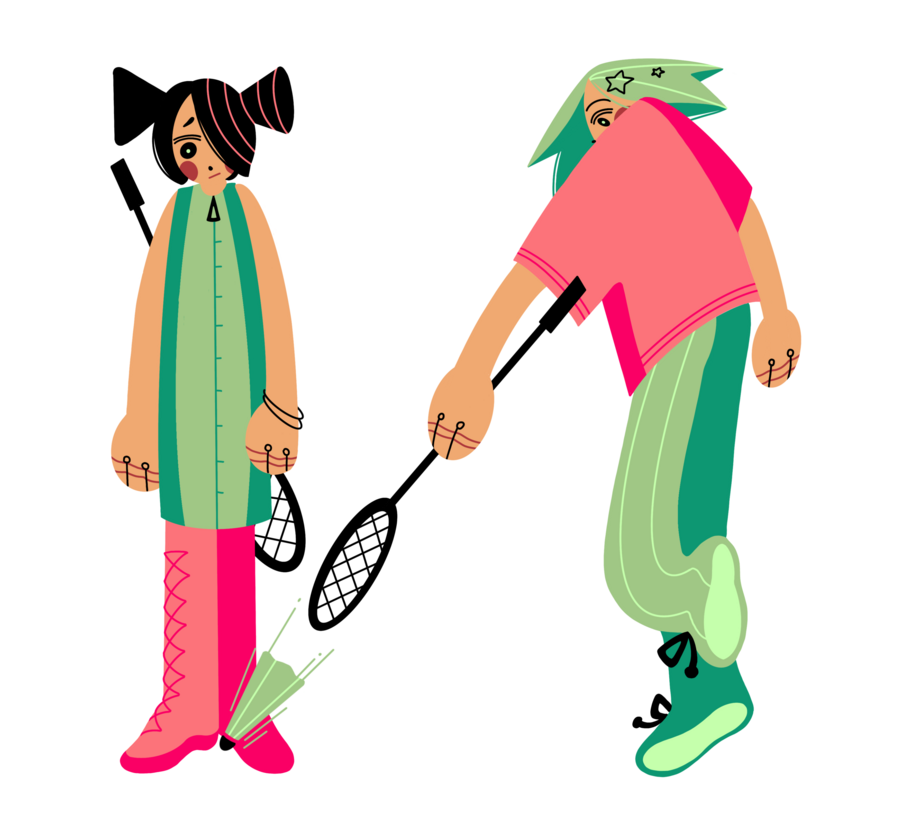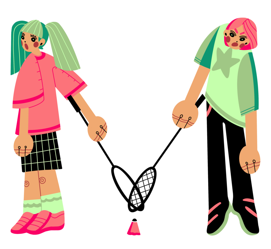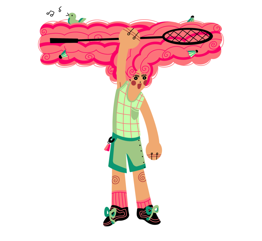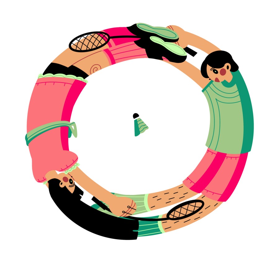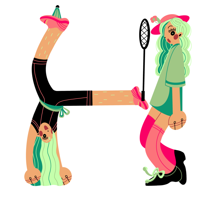 Бадминтон — очень веселый вид спорта, доступный каждому, будь то взрослый или ребенок. Иллюстративные буквицы изображают забавные сценки, многие из которых могли происходить с каждым игроком.