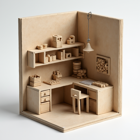 Promt for roombox: create a small cube that is like a construction set inside which you can create the interior of the room light colors, wood material. Promt for box: create a square box in a minimalist style so it’s two-colored.