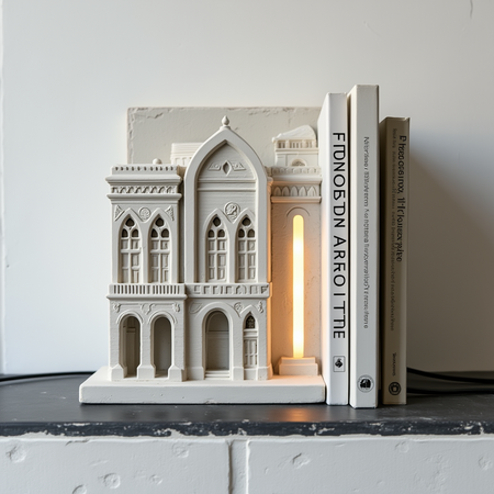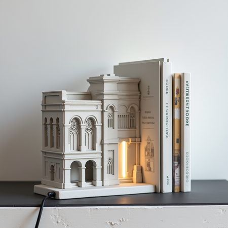 В качестве продукта, которое могло бы выпускать бюро, я выбрала статуэтку в виде архитектурной постройки, которая могла бы служить подставкой для книг и небольшим светильником.