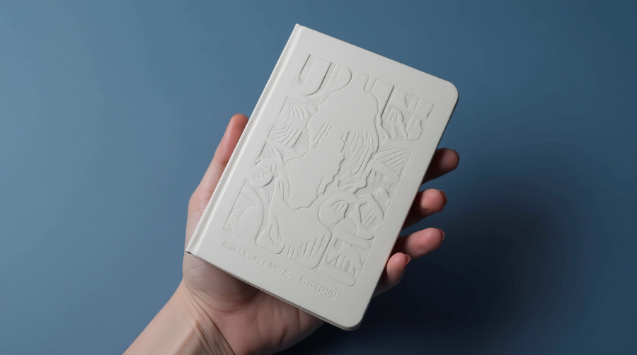 Promt: create an a5 notebook in light colors with a volumetric convex cover with shapes that echo the material of building facades.