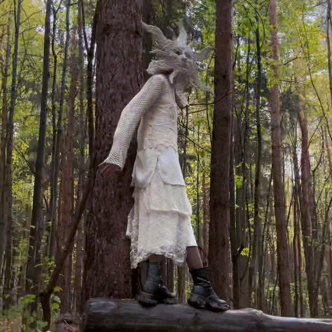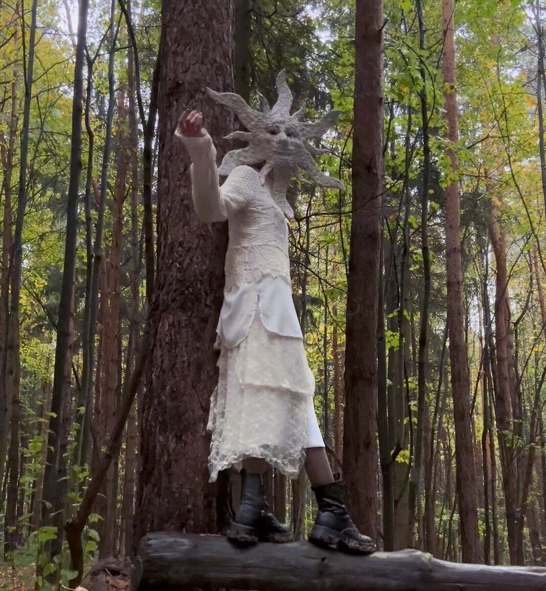 Игра света и тени, природных и искусственных материалов (маска, лес, тюль) создает уникальную визуальную и концептуальную симфонию, где мифология и современное искусство сливаются в нечто новое. Этот синтез отражает важность Ярило не только как бога света, но и как того, кто олицетворяет обновление и грядущие изменения.