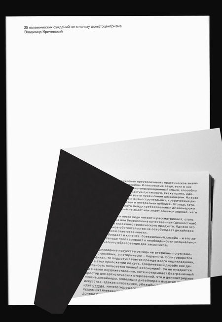 https://typejournal.ru/arts/Krichevsky-Manifesto metaphor: training manual, office format (available for self-replicating) 210*197 (a4) garriture: Akzidenz-Grotesk Pro fixation: slidebinder (lightly add and remove sheets, by try to add the number of illustrations to do not copy pages when adding illustrations, because numbers, to which refer to images, are added to the xnbsp; list with image) task: i relate the texture to the the same as the parallel article on the website ii collect simple, s the same as the teaching material, on the other side as the nomenclature of the ideas of the manifesto itself