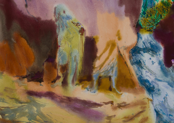 Омываются водами камни преткновения, 100 × 150 см Бумага, акварель, деревянная панель, 2023