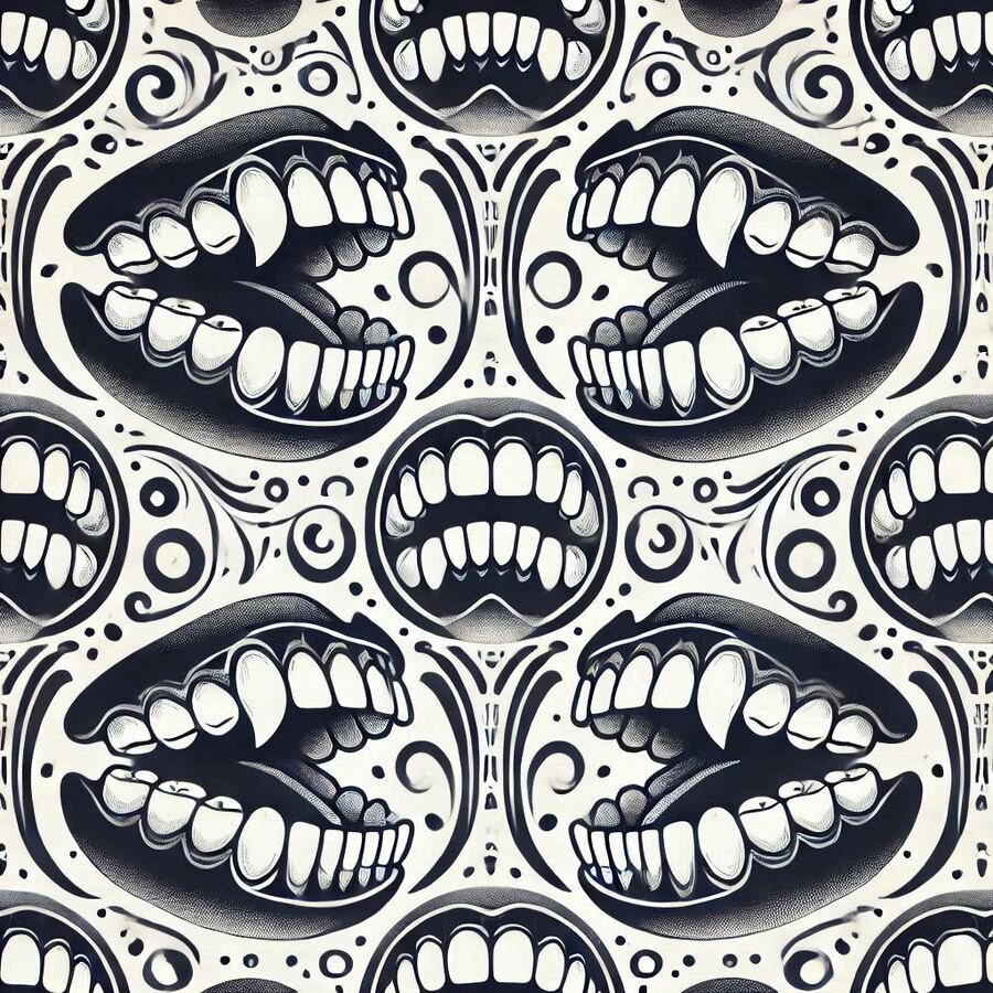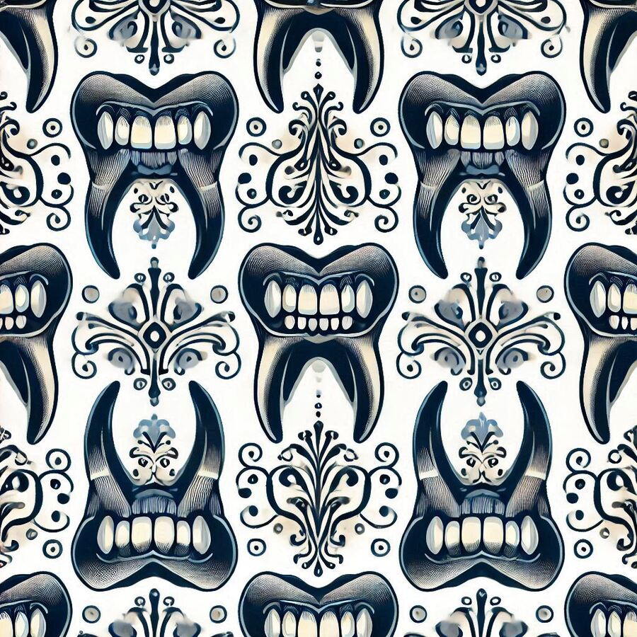 Teeth and jaws minimalistic victorian-stylized ornament pattern. Background is whirte.