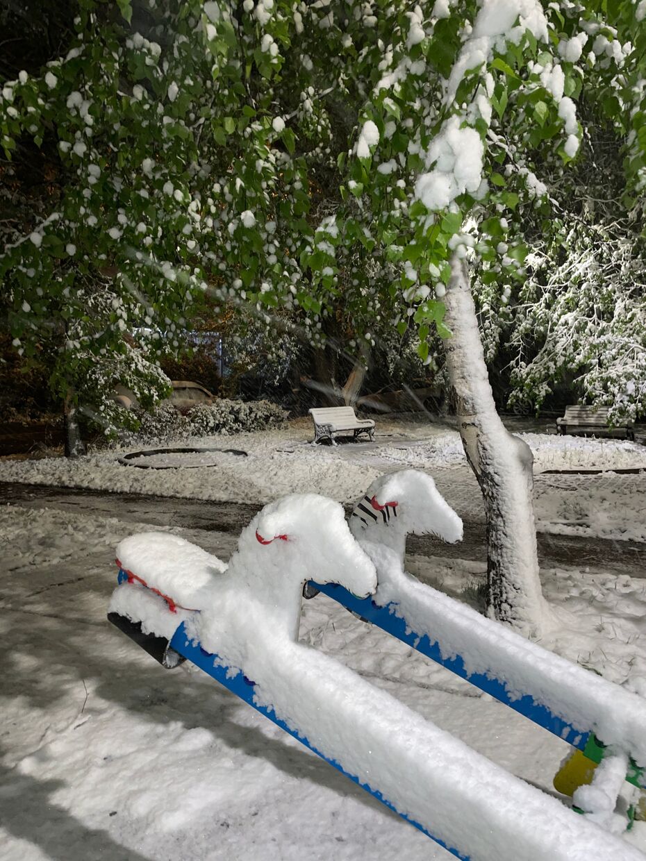 Примерно год назад я переехала в другой район. По дороге к метро я видела голубую клумбу и зачем-то фотографировала её почти каждый раз, когда шла мимо. Мне просто хотелось это сделать. Потом я подумала, что мне интересна сама тема изменений. Когда поздней весной выпал снег, мне стало понятно, что один объект может вместить в себя и тему сбоя привычного хода вещей, и тему ностальгии.