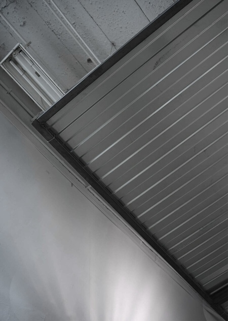 The roof above the head is a large-scale installation, a metal roof suspended inside the gallery, and has been specially designed for the «Interple Pure» exhibition.