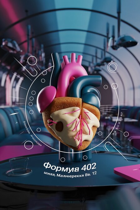 Концепция сгенерирована с помощью Chat GPT, промпт: «Напиши описание для кафе для всей семьи с названием „Формула 402“, в котором меню состоит из десертов стилизованных под человеческие органы».