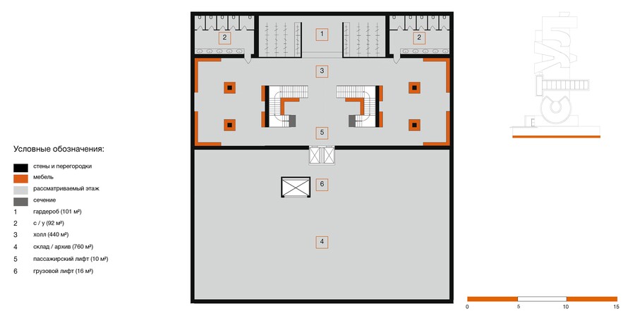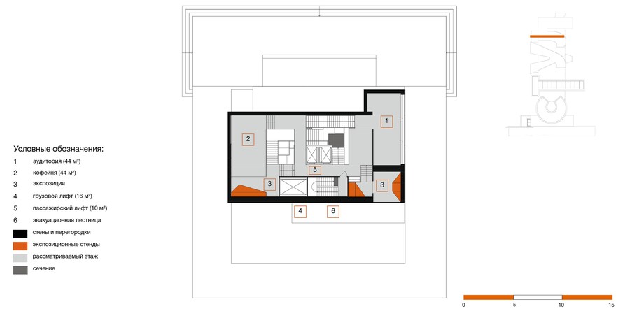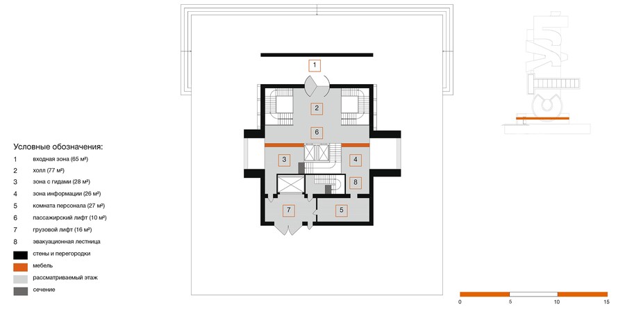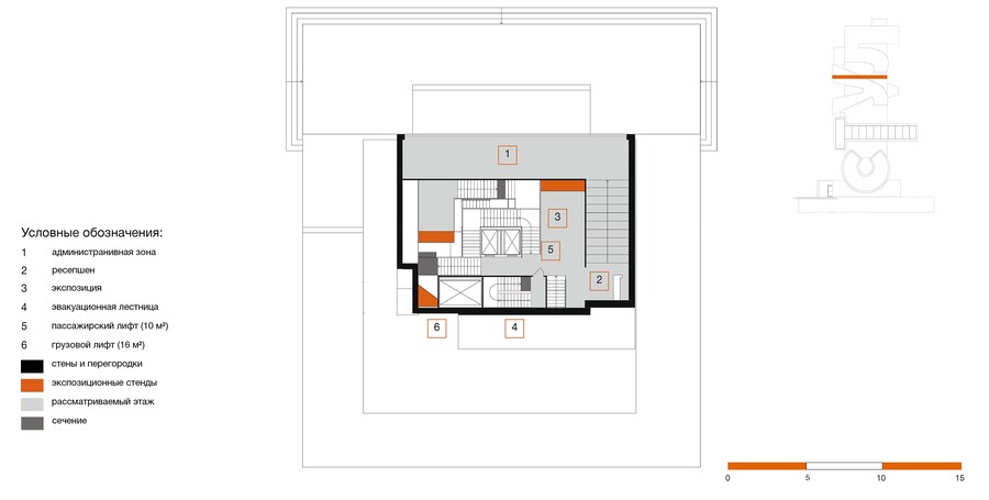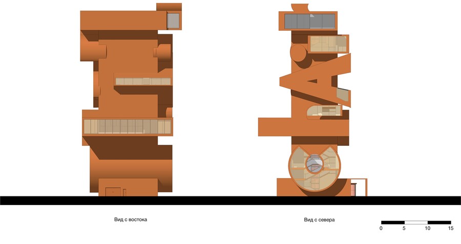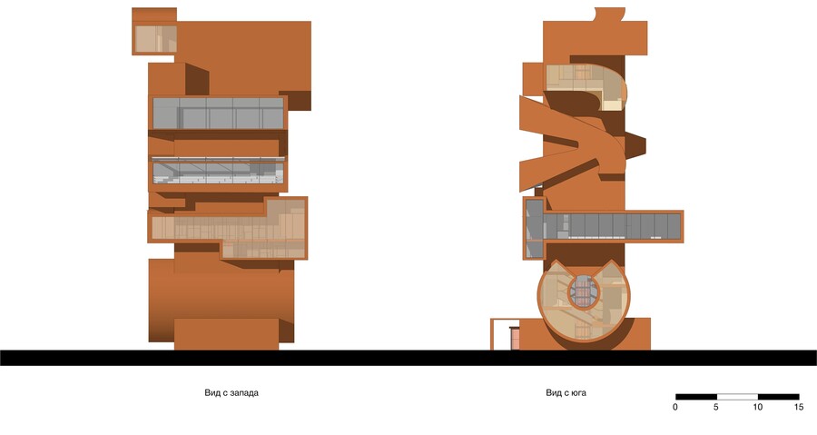 сечение, вид с западного фасада