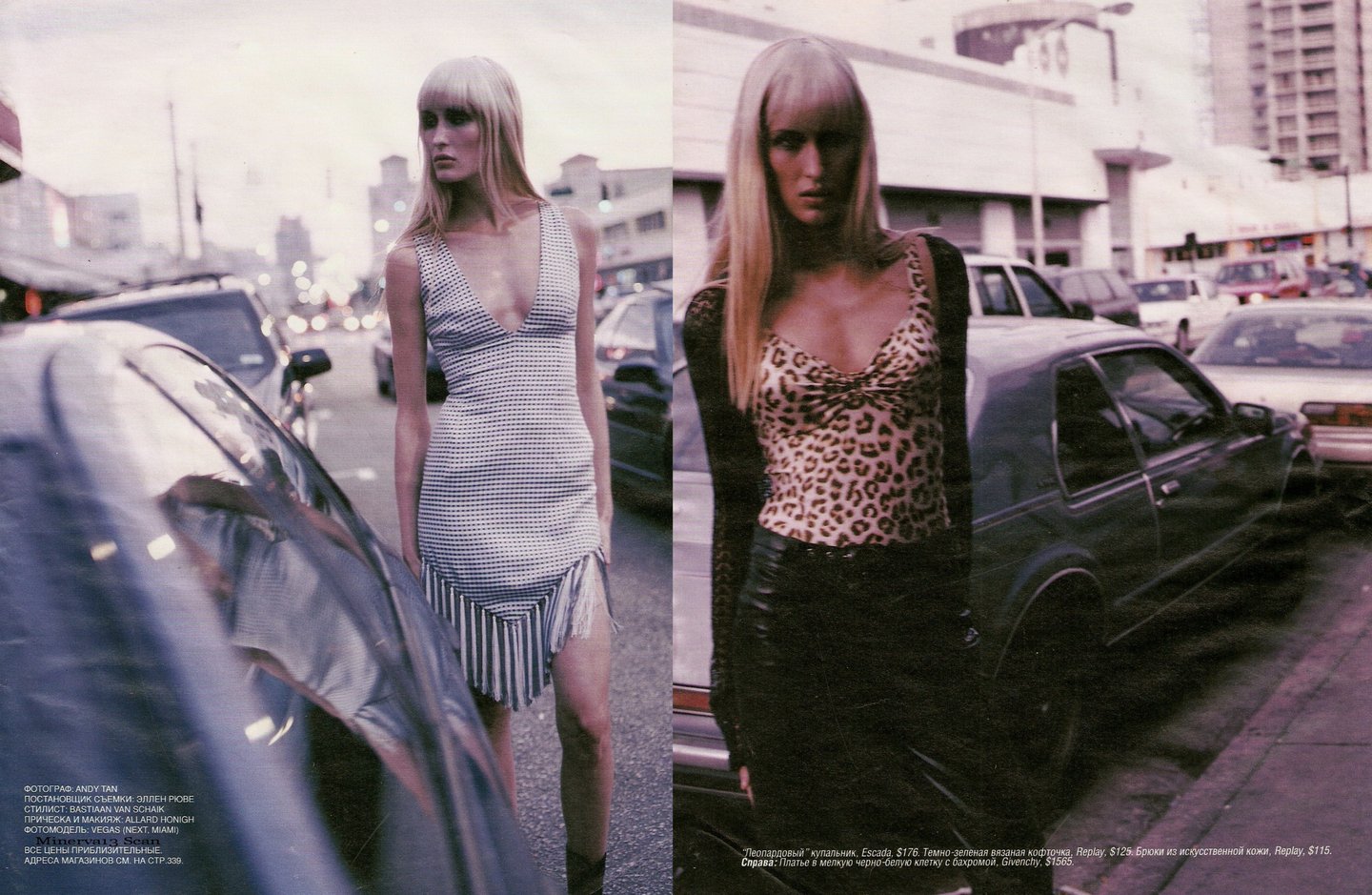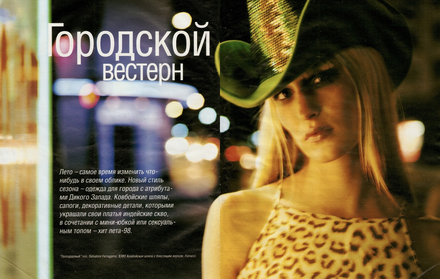«Городской вестерн» Cosmopolitan Russia, май 1998 фото: Andy Tan постановщик и стилист: Эллен Рюве модель: Vegas (Next, Miami)