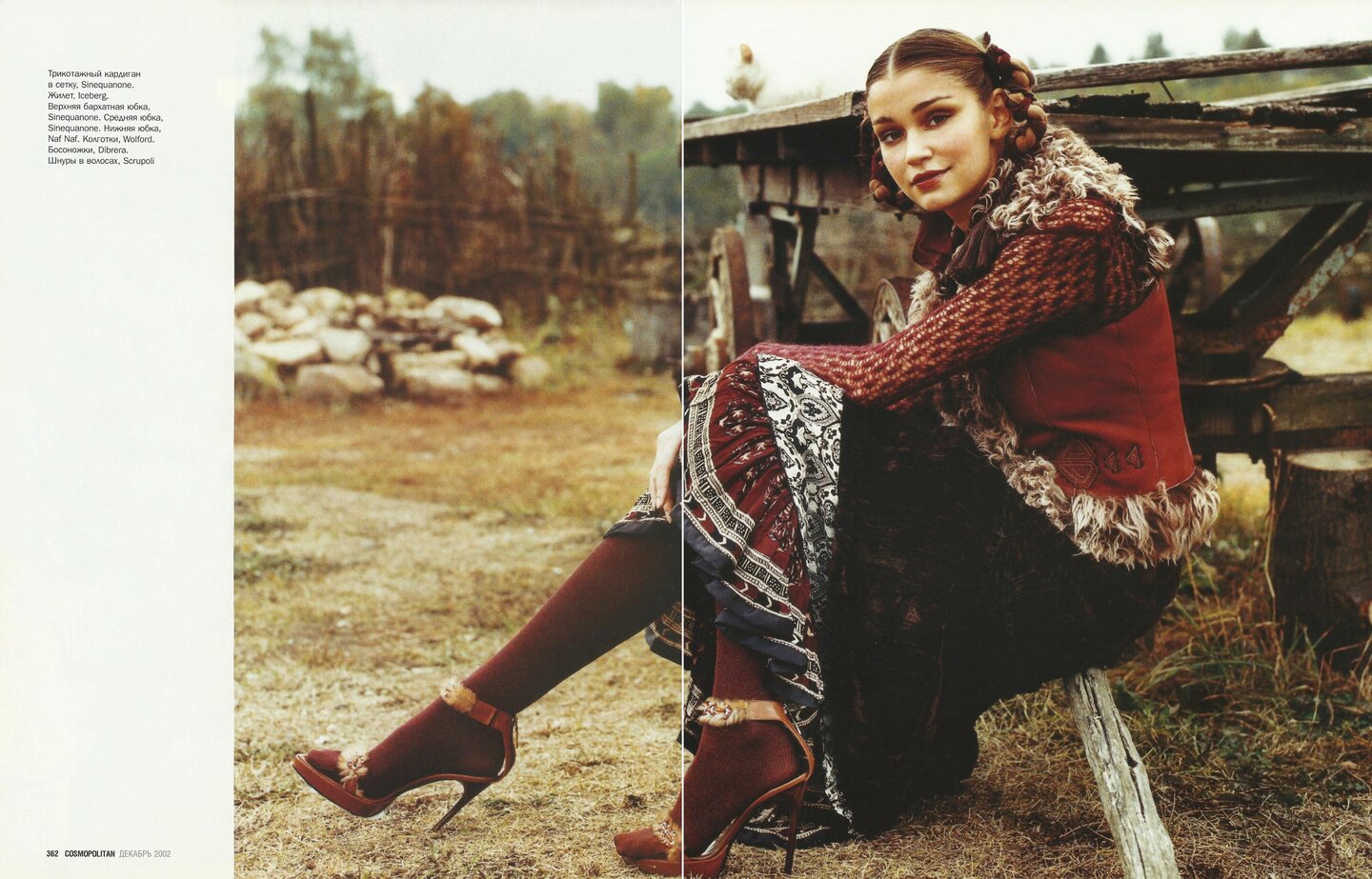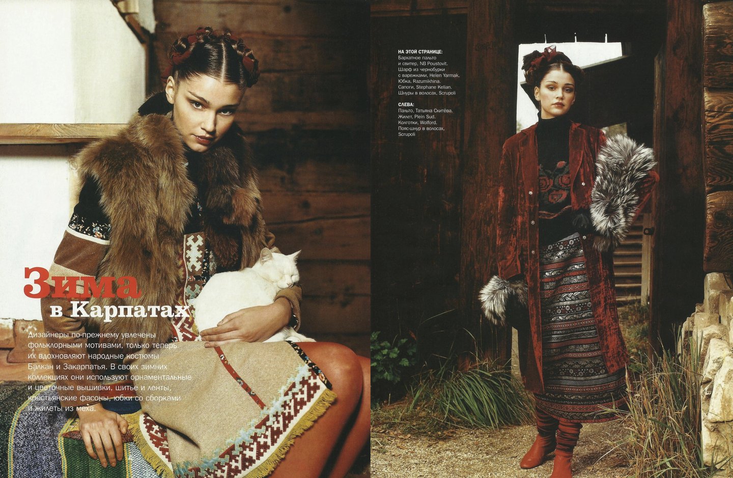 «Зима в Карпатах» Cosmopolitan Russia, декабрь 2002 в съемке использована одежда Татьяны Скитёвой, Елены Ермак фото: Андрей Кордовский стиль: Ирина Черняк модель: Регина Муртазина (Fashion)