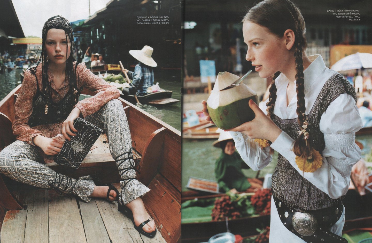 Съемки, в которых представлена одежда российских дизайнеров, можно классифицировать на два основных типа: первый включает в себя съемки, где коллекции российских брендов представлены в сочетании с моделями зарубежных брендов. Такое взаимовлияние, вероятно, должно было способствовать интеграции российской моды в мировые тенденции в сознании потребителя.
