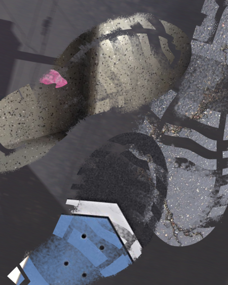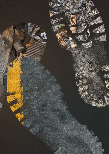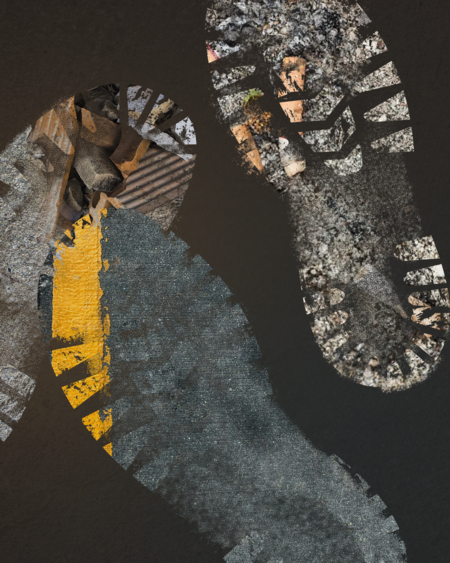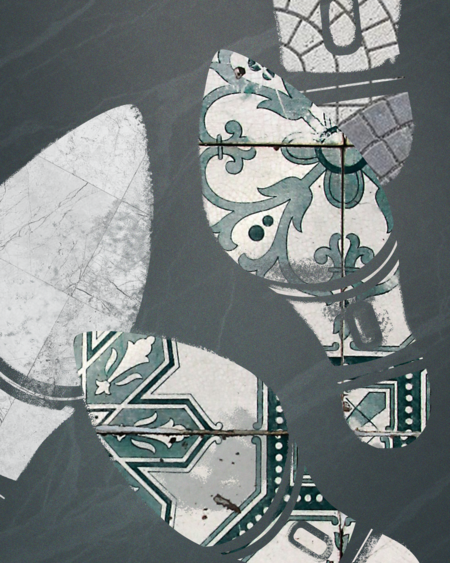 Серия работ «Следы города» отражает невидимый диалог между городом и его жителями через самые обыденные следы — отпечатки обуви. Это визуальный архив повседневного контакта человека и мегаполиса. Город раскрывается в точке соприкосновения подошвы и поверхности.