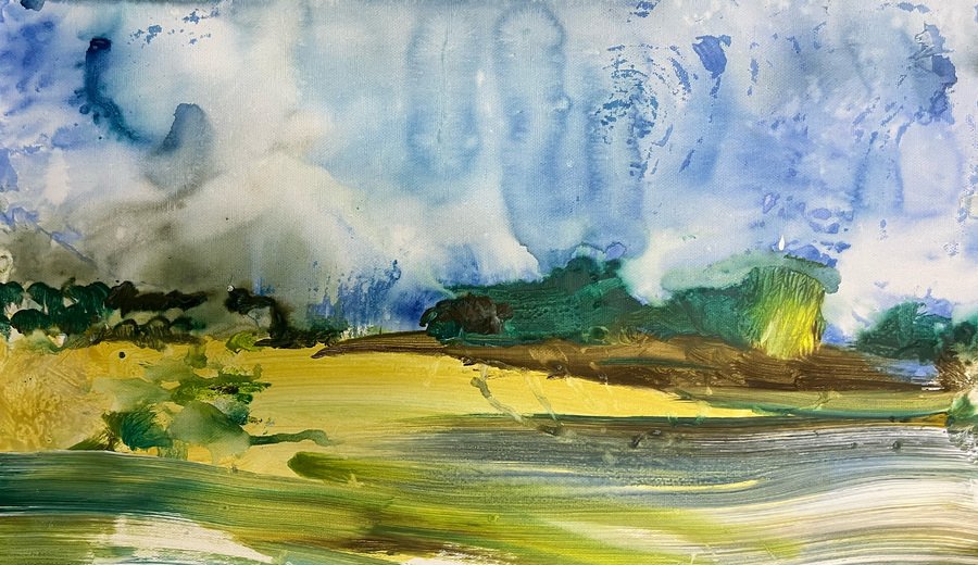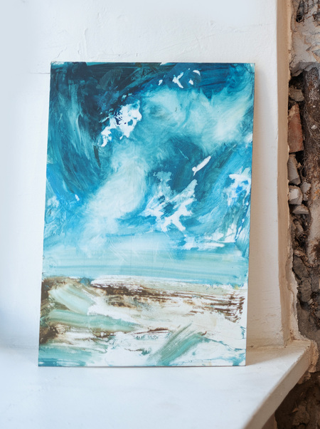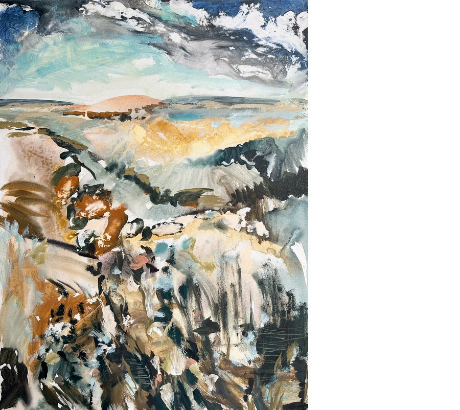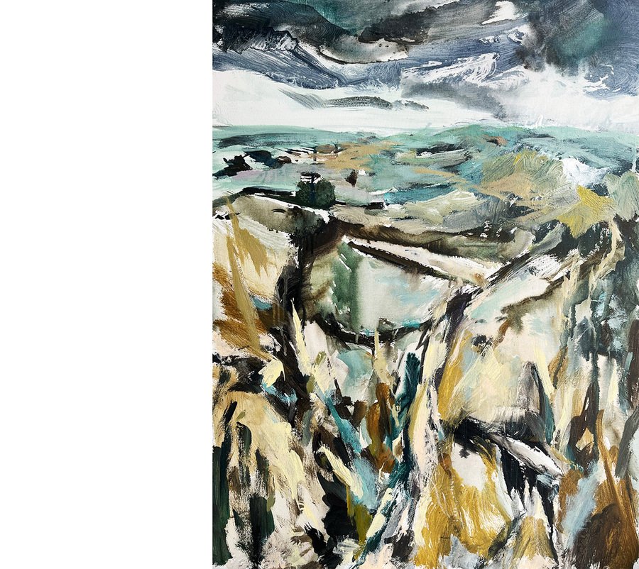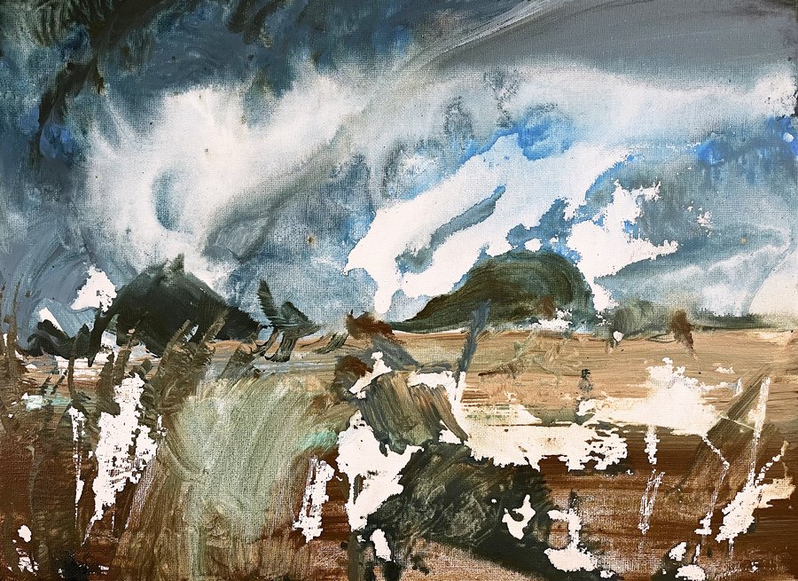 Всё ещё бушует, холст, акрил, 60×40 см, 2025 // Смерч, холст, акрил, 40×50 см, 2025