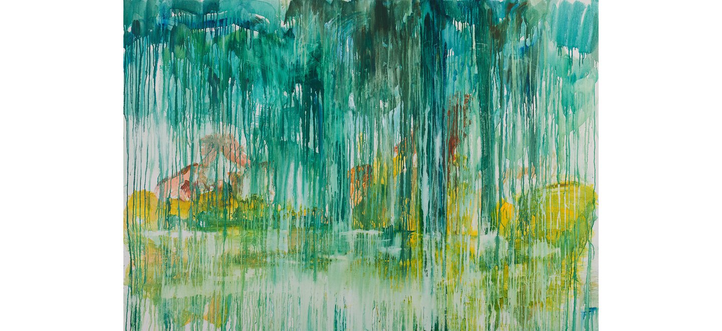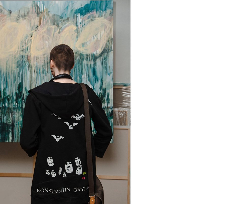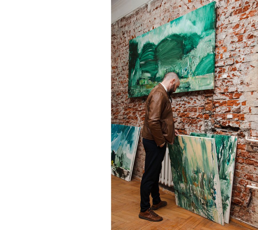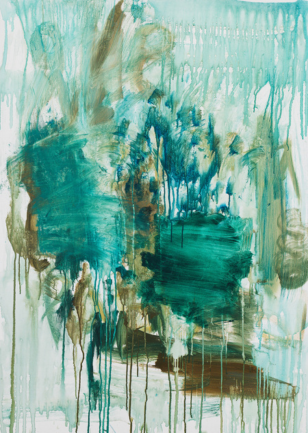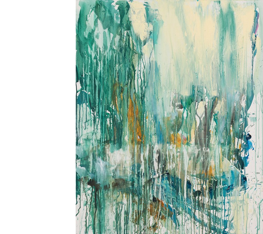 Мой подход — интуитивная техника, работа без эскизов, где мне любопытен эксперимент, как создается новая видимость. Здесь стихийные и как будто случайные красочные подтеки, прикосновения кисти.