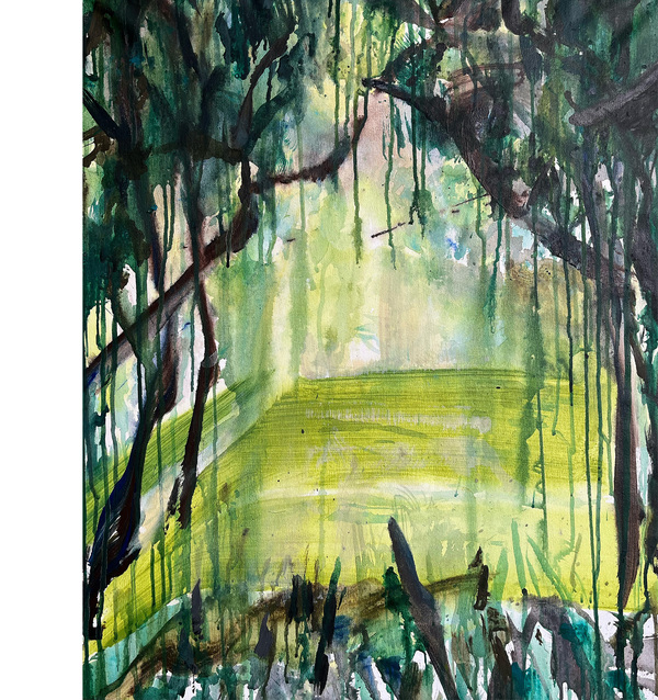 Текучие сны, холст, акрил, 120×100 см, 2025 // Шёпот леса, холст, акрил, 120×100 см, 2025